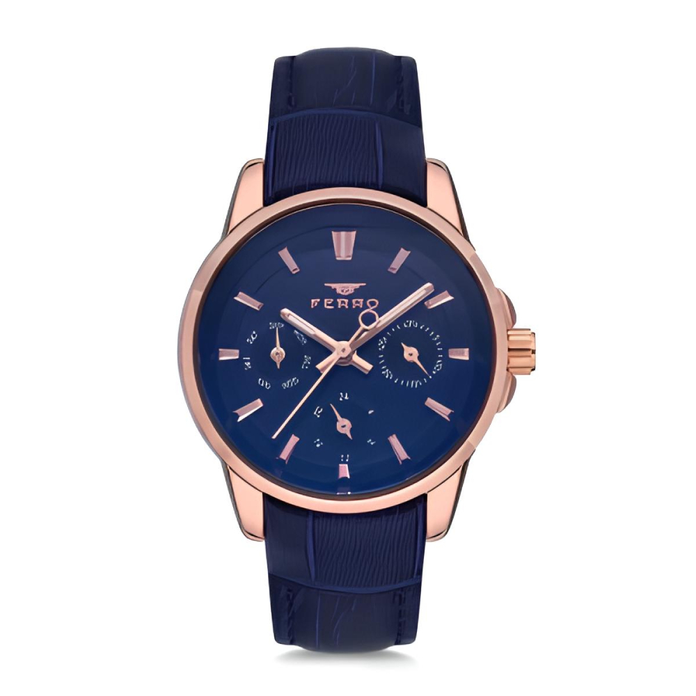 Ferro Lacivert Deri Kordon Kadın Kol Saati Fonksiyonları Aktif 3 ATM Su Geçirmez TH-FM1905B-965-T
