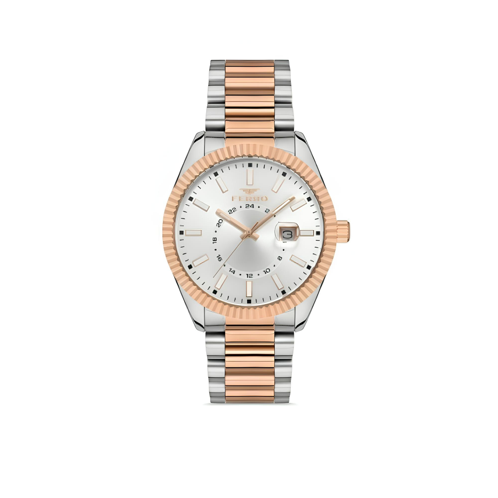 Ferro Rose Gümüş Renk Çelik Kordon Erkek Kol Saati 3 ATM Su Geçirmez TH-F11288AWT-E