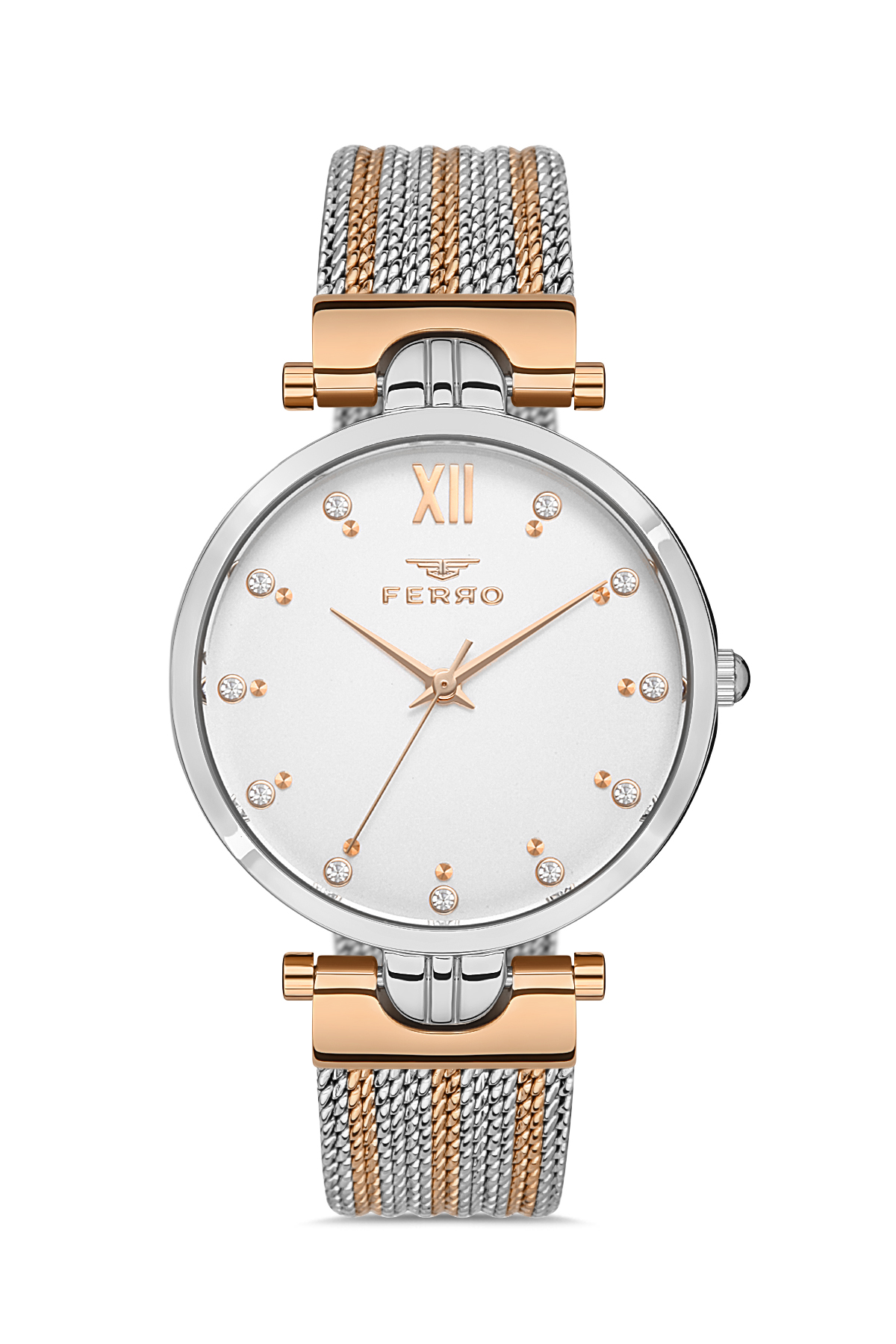 Ferro Rose Gümüş Renk Çelik Hasır Kordon Kadın Kol Saati Su Geçirmez TH-FL21318C-E
