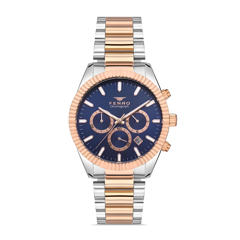 Ferro Rose Gümüş Çelik Kordon Erkek Kol Saati Fonksiyonları Aktif 3 ATM Su Geçirmez TH-FM31289A-E3