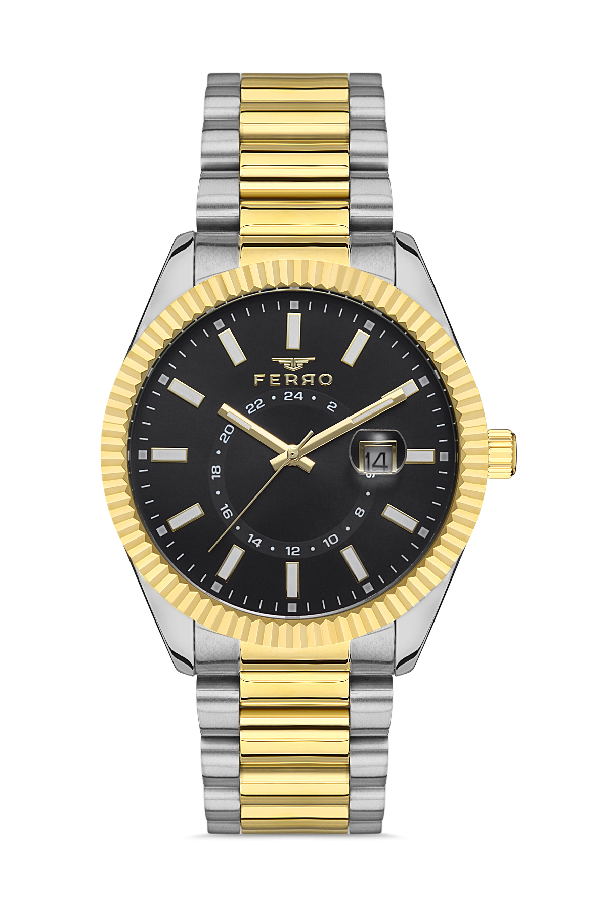 Ferro Altın Gümüş Renk Çelik Kordon Erkek Kol Saati 3 ATM Su Geçirmez TH-F11288AWT-D2