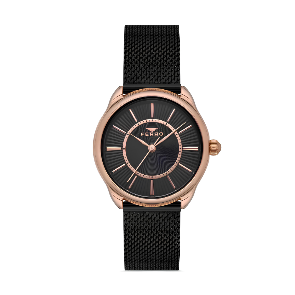 Ferro Siyah Çelik Hasır Kordon Kadın Kol Saati Su Geçirmez TH-FL21242C-C
