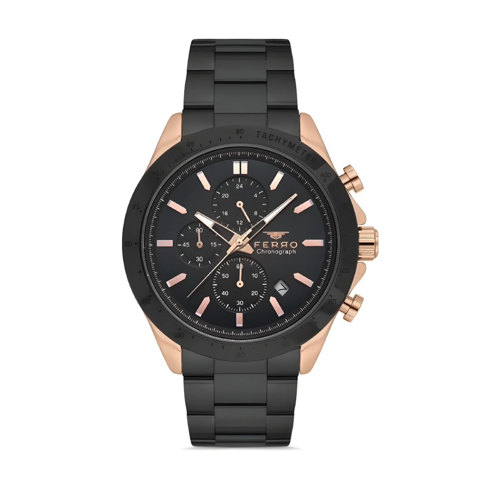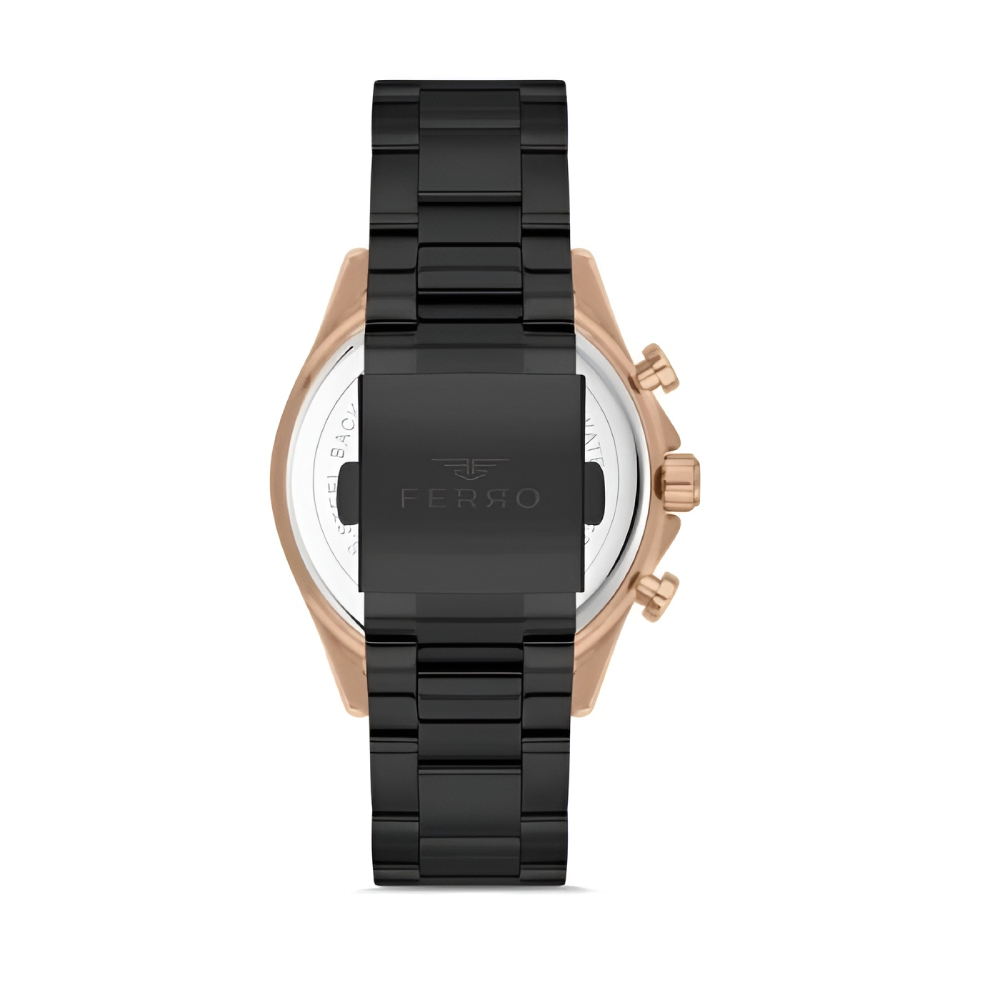 Ferro Siyah Çelik Kordon Erkek Kol Saati Fonksiyonlar Aktif 3 ATM Su Geçirmez TH-FM31455A-R