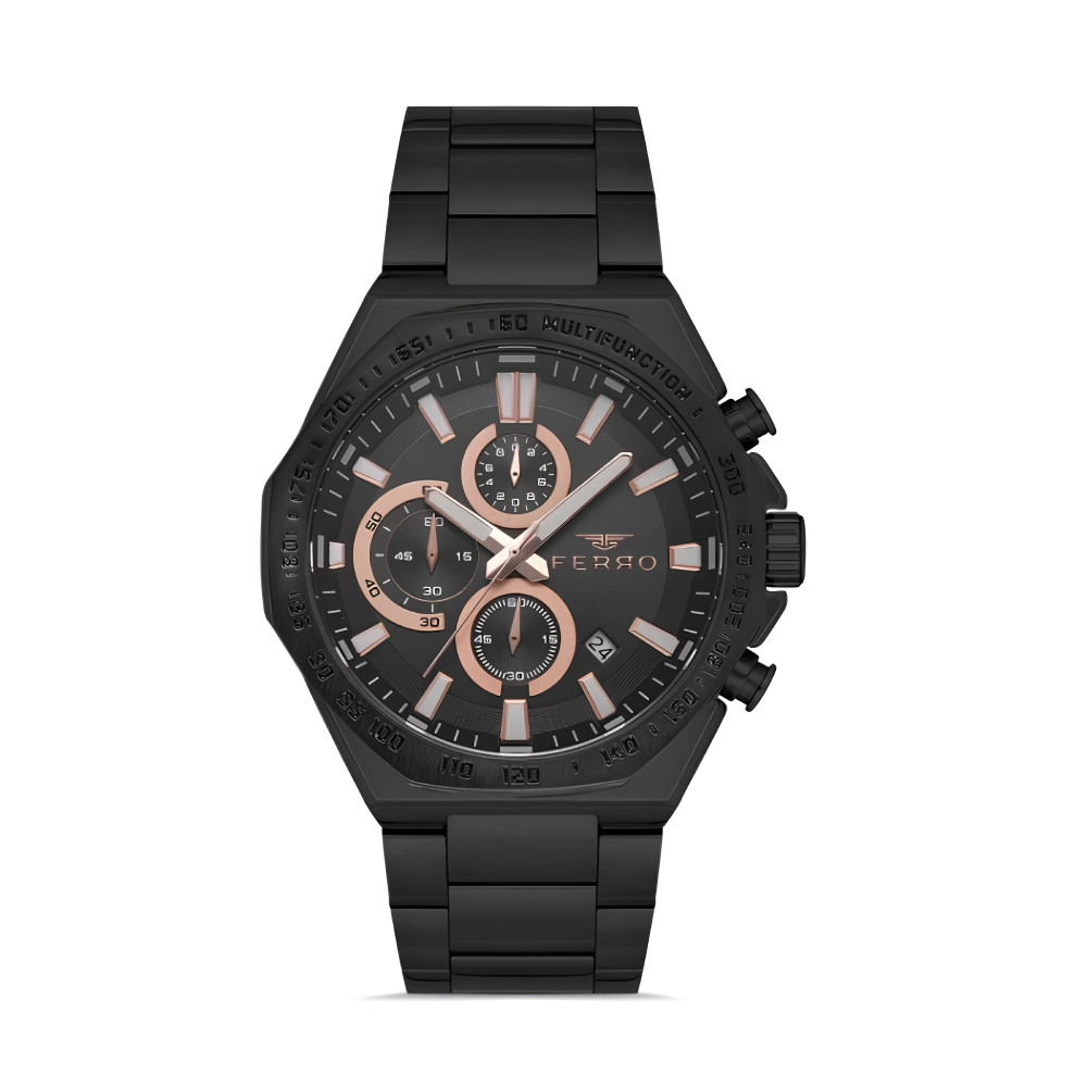 Ferro Siyah Çelik Kordon Erkek Kol Saati Fonksiyonlar Aktif 3 ATM Su Geçirmez TH-FM41110A-G