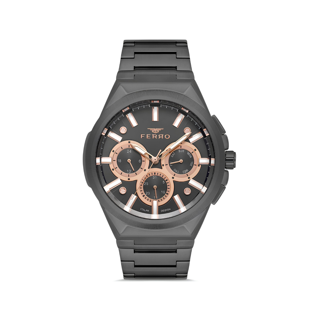 Ferro Siyah Çelik Kordon Erkek Kol Saati Fonksiyonları Aktif 3 ATM Su Geçirmez TH-FM11505A-V