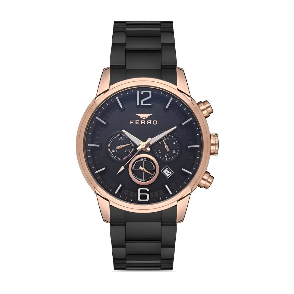 Ferro Siyah Çelik Kordon Erkek Kol Saati Tüm Fonksiyonlar Aktif 3 ATM Su Geçirmez TH-FM31916A-R
