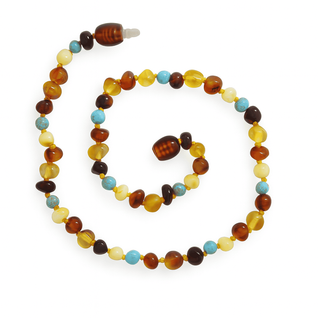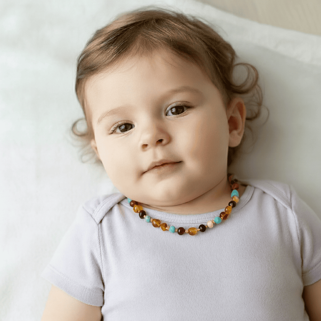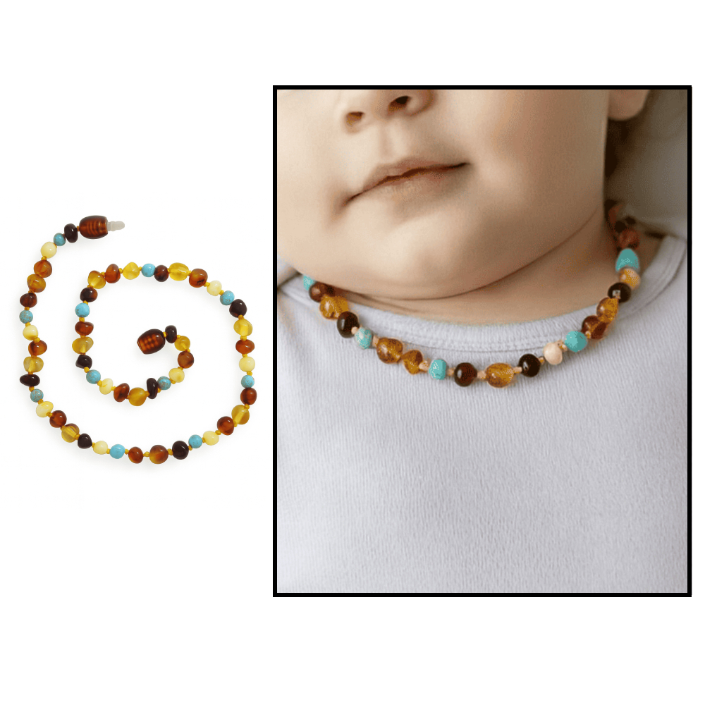 Firuze Doğaltaş Kombinli Çok Renkli Özel Seri Naturel Damla Kehribar Bebek Diş Kolyesi