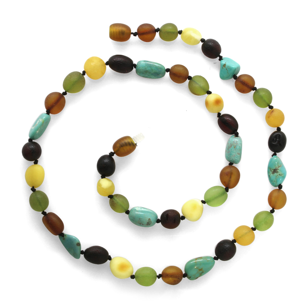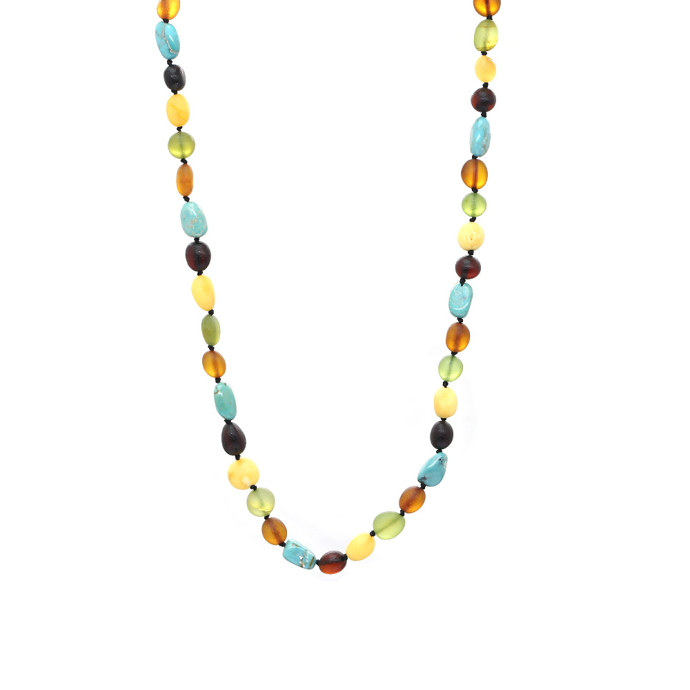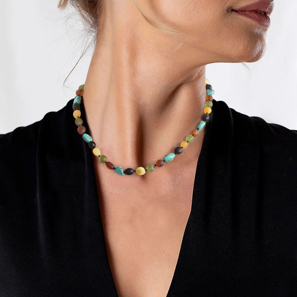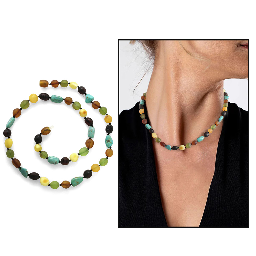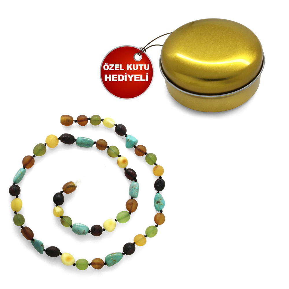 Firuze Doğaltaş Kombinli Çok Renkli Özel Seri Naturel Damla Kehribar Taşlı Kadın Kolye