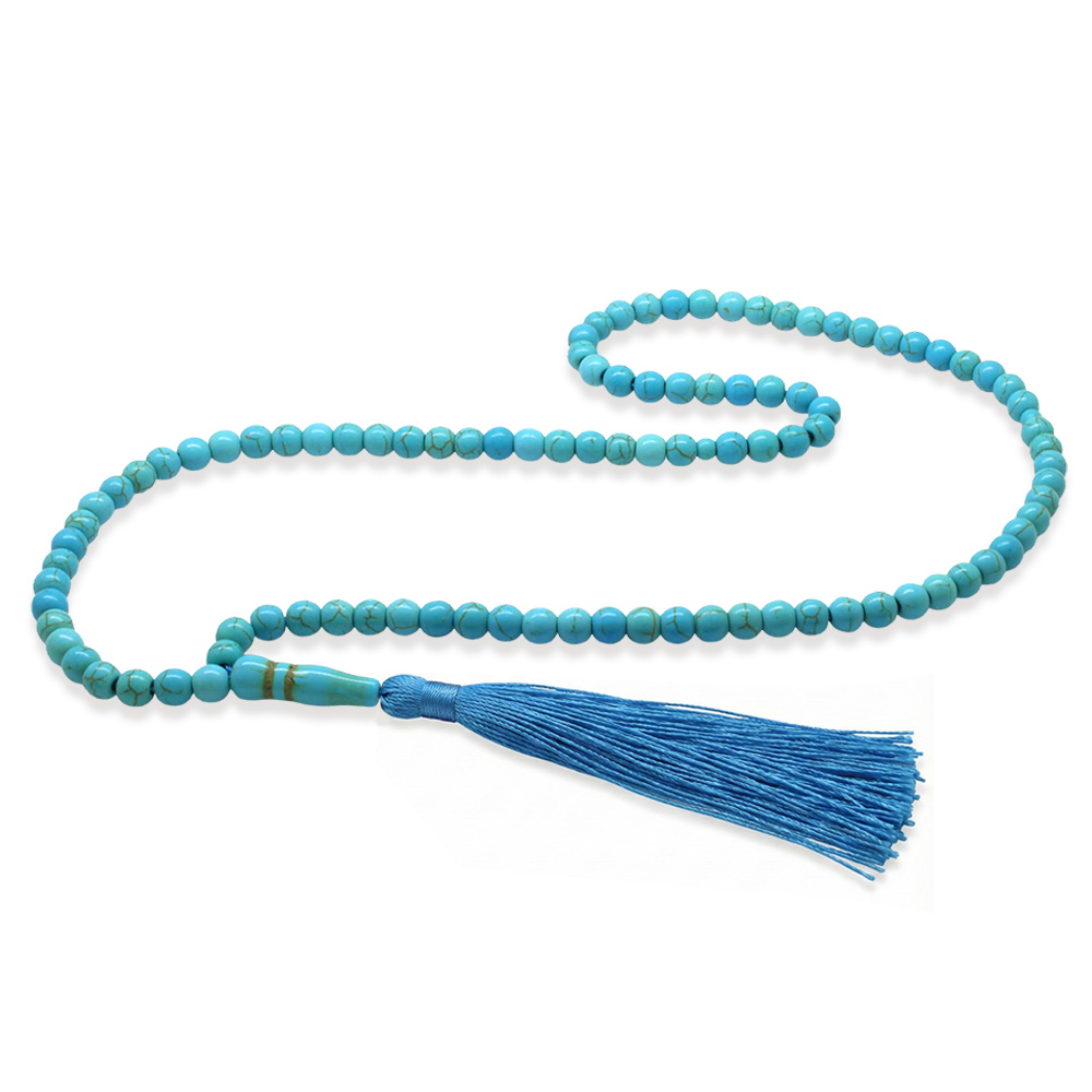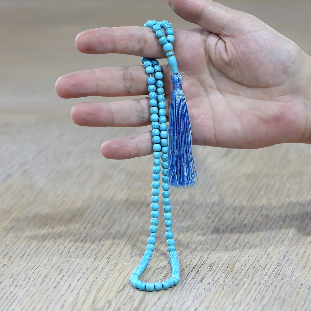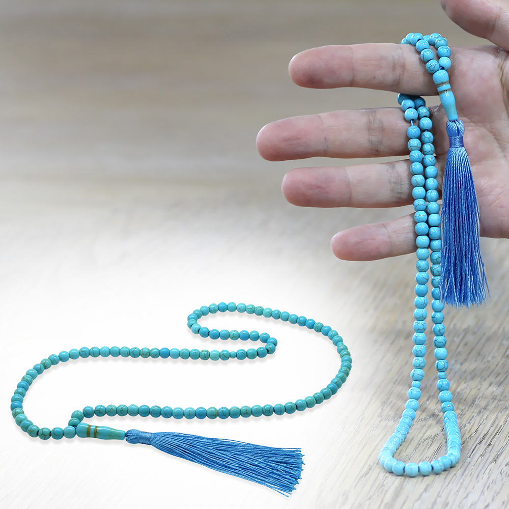 Firuze Doğaltaş Namaz Tesbihi - Osmanlı Saray Püsküllü - Turkuaz - Küre Kesim