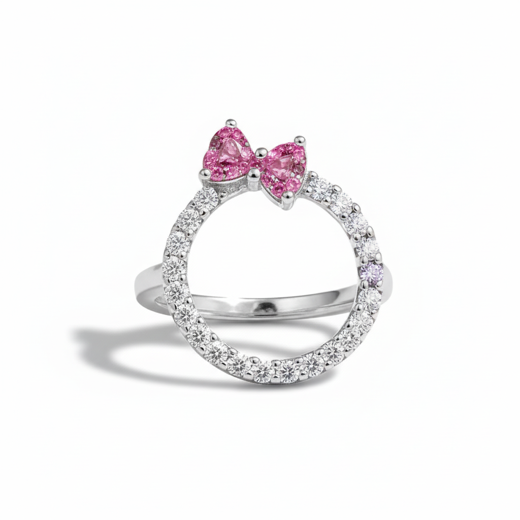 Fuşya Zirkon Kelebek Tasarım 925 Ayar Gümüş Bayan Yüzük