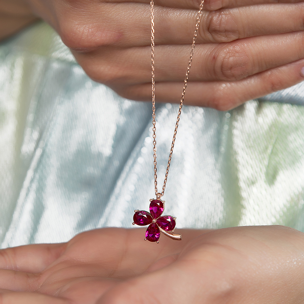 Fuşya Zirkon Taşlı Kır Çiçeği Tasarım Rose Renk 925 Ayar Gümüş Kadın Kolye