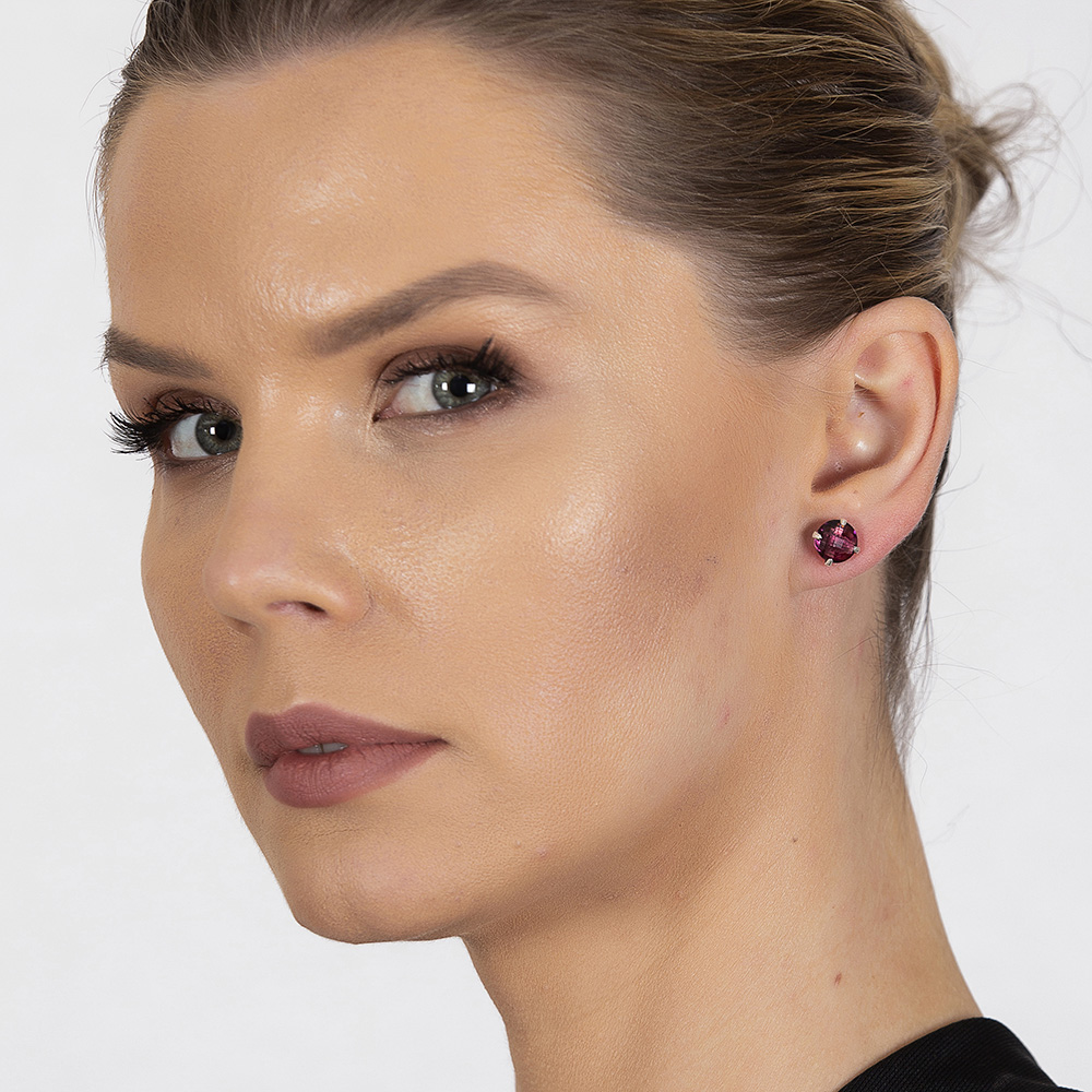 Fuşya Zirkon Taşlı Oval Tasarım Büyük Boy 925 Ayar Gümüş Kadın Küpe