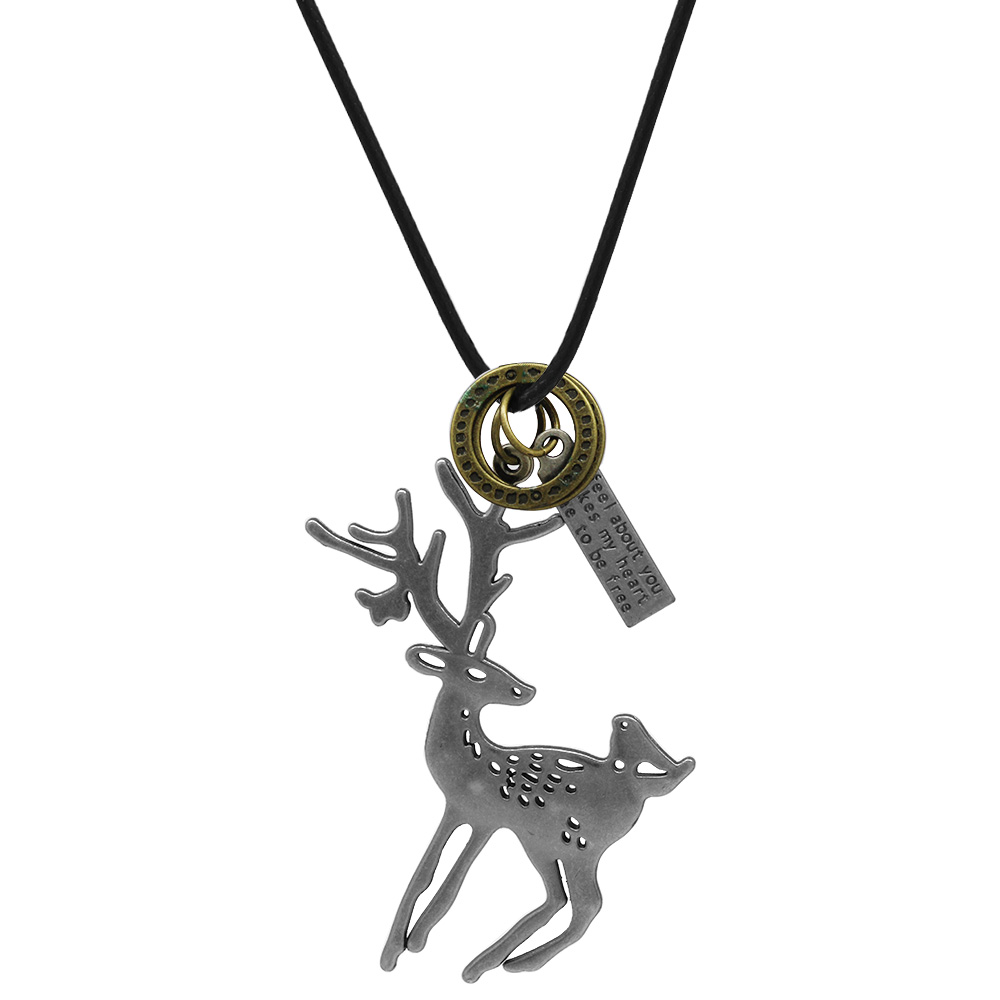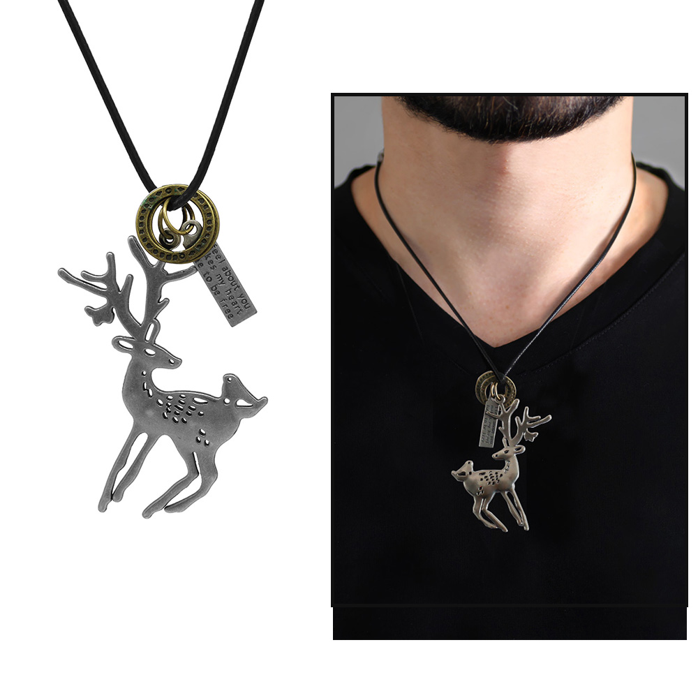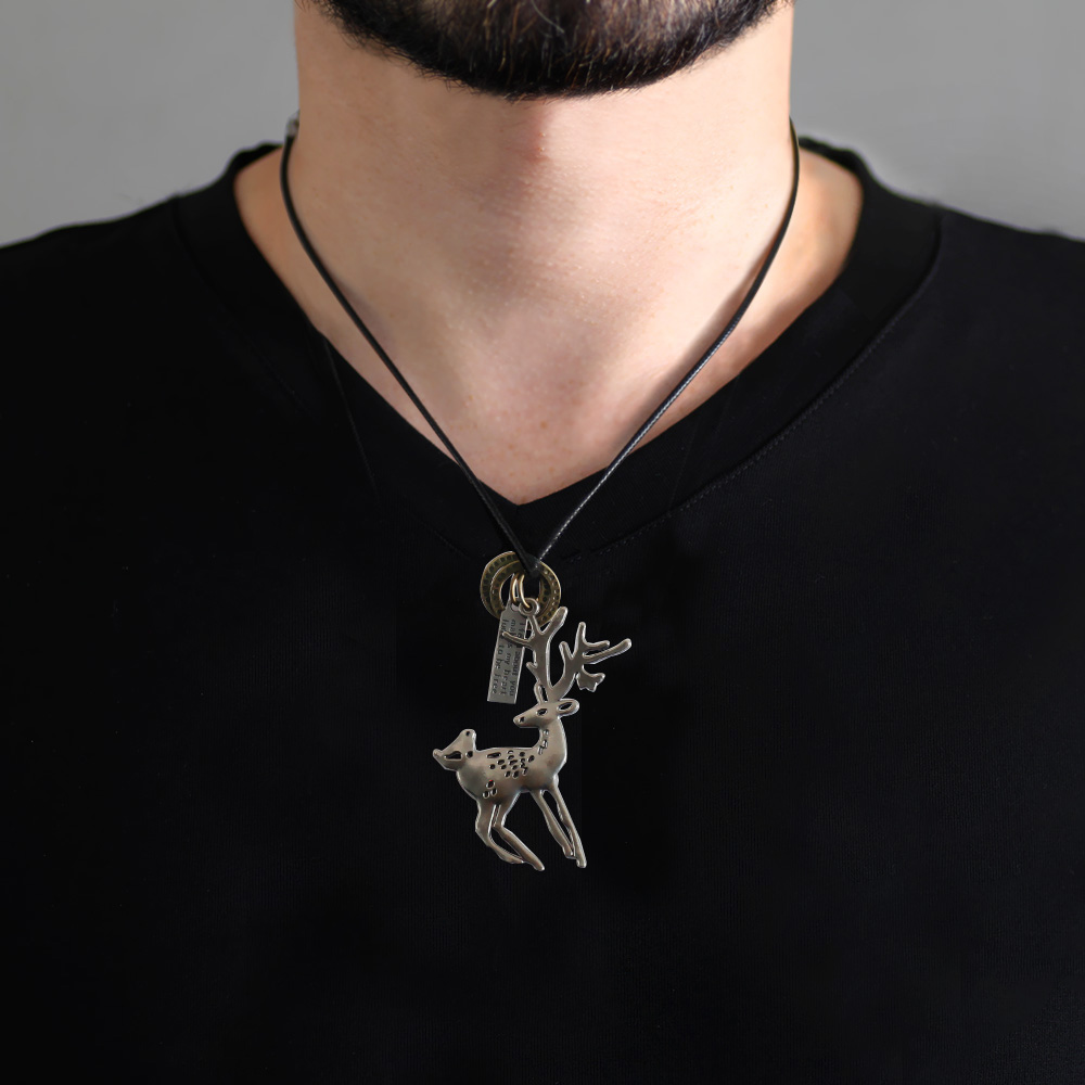 Geyik Tasarım Ayarlanabilir İp Zincirli Pirinç Erkek Kolye