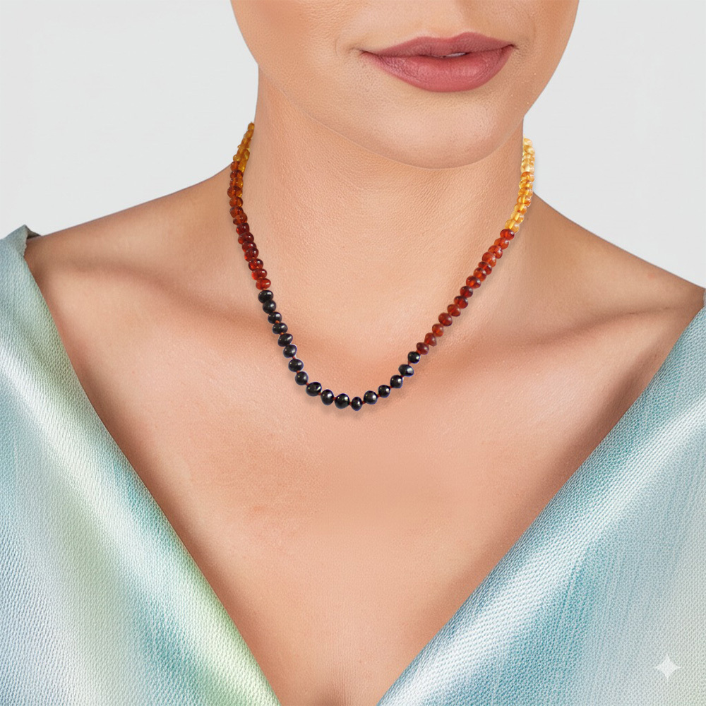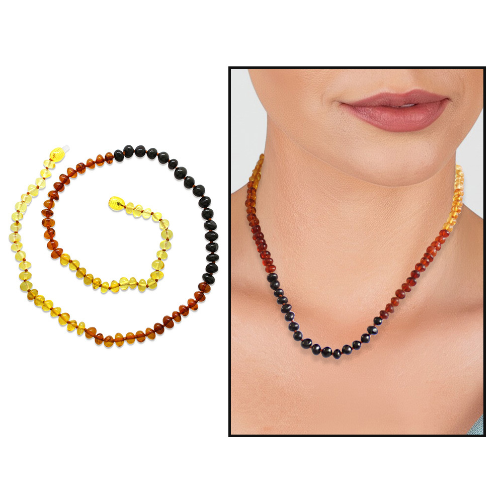 Gökkuşağı Renkli Doğal Damla Kehribar Taşlı Kadın Kolye - 1