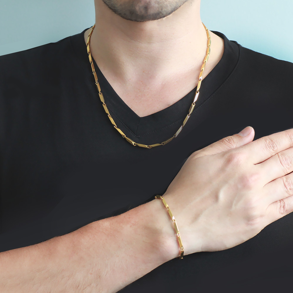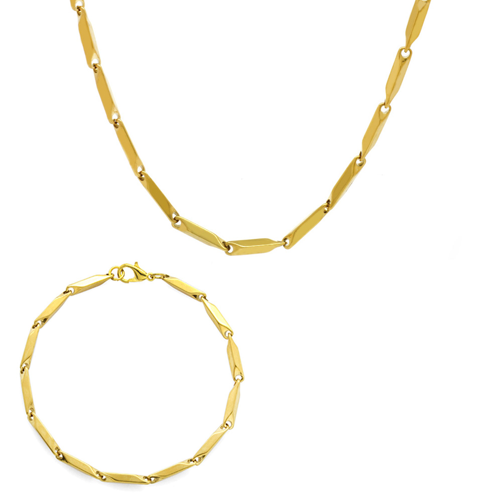 Altın Renk 917L Paslanmaz Çelik Singapur Zincir ve Bileklik Kombini - 2