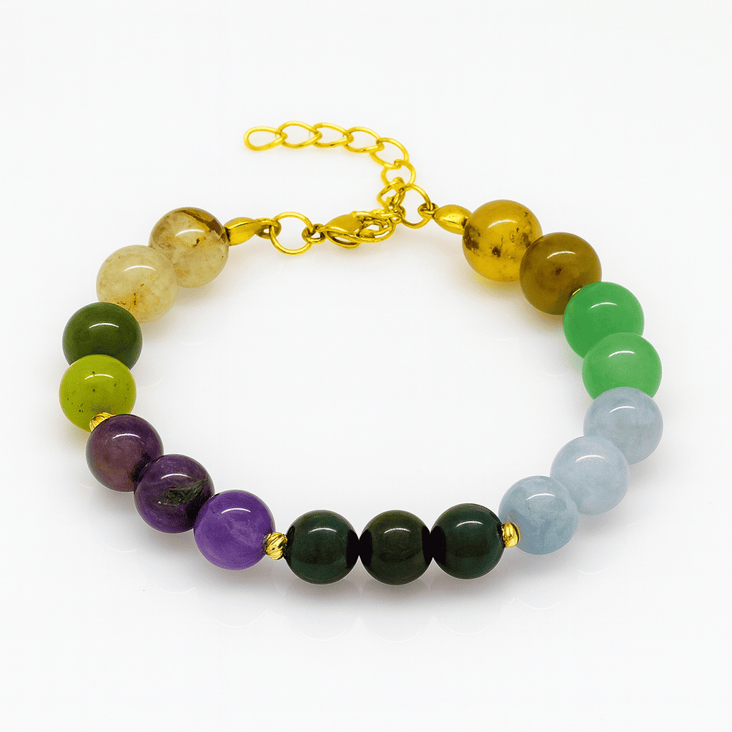 Doğanın Şifası, Elinizde! Binlerce yıldır kullanılan doğal taşlar, sadece görsel bir şölen değil, aynı zamanda vücudunuz ve ruhunuza hitap eden güçlü bir enerji kaynağıdır. Hazırladığımız şifa temalı çakra takılarımızda, akuamarin, anyolit, ametist, aventurin, kan taşı, opal ve sitrin gibi birbirinden değerli taşları bir araya getirerek size özel bir deneyim sunuyoruz. Bu eşsiz taşların her biri, kendi içinde taşıdığı şifalı titreşimlerle bedeninizdeki enerji akışını düzenler, ruhunuzu besler ve zihninizi berraklaştırır. Düzenli olarak taktığınız bu özel takılar sayesinde; Stres ve kaygılarınız azalır: İç huzurunuzu bulur, daha sakin ve dengeli bir yaşam sürersiniz. Bağışıklık sisteminiz güçlenir: Hastalıklara karşı direnç kazanır, daha sağlıklı bir bedene sahip olursunuz. Enerji seviyeniz yükselir: Yorgunluk ve halsizlik gibi şikayetleriniz azalır, gün boyu daha dinç hissedersiniz. Duygusal dengeyi yakalarsınız: Negatif duygulardan arınır, pozitif bir bakış açısı kazanırsınız. Ruhsal gelişiminize katkı sağlar: İçsel yolculuğunuzda size rehberlik eder. Her bir taşın kendine özgü özellikleri ve şifalandırıcı etkileriyle, bu özel takılar size tam bir iyilik hali sunar. Akuamarin sizi sakinleştirir ve iç huzurunuzu artırırken, anyolit bağışıklık sisteminizi güçlendirir ve duygusal dengeyi sağlar. Ametist stresinizi azaltır ve uykunuzu düzenlerken, aventurin şansınızı açar ve yaratıcılığınızı destekler. Kan taşı enerji verir ve canlılık kazandırırken, opal duygusal iyileşmeyi destekler. Sitrin ise pozitifliği ve bolluğu hayatınıza çeker. Şifa temalı çakra takılarımız, hem bir aksesuar hem de bir şifa aracı olarak size eşlik edecek. Not: Doğal taşların etkileri kişiden kişiye değişebilir. En iyi sonuçlar için takınızı düzenli olarak takmanız ve onunla bağ kurmanız önerilir.
