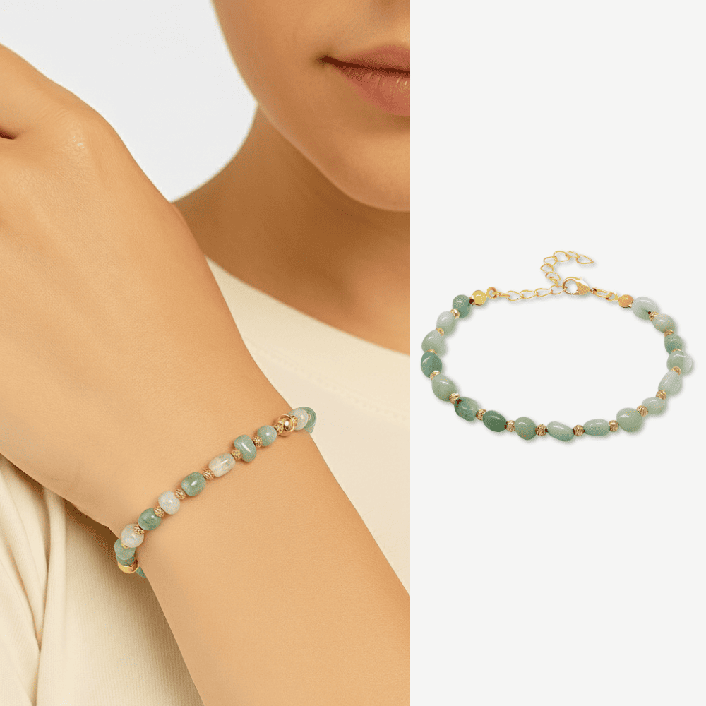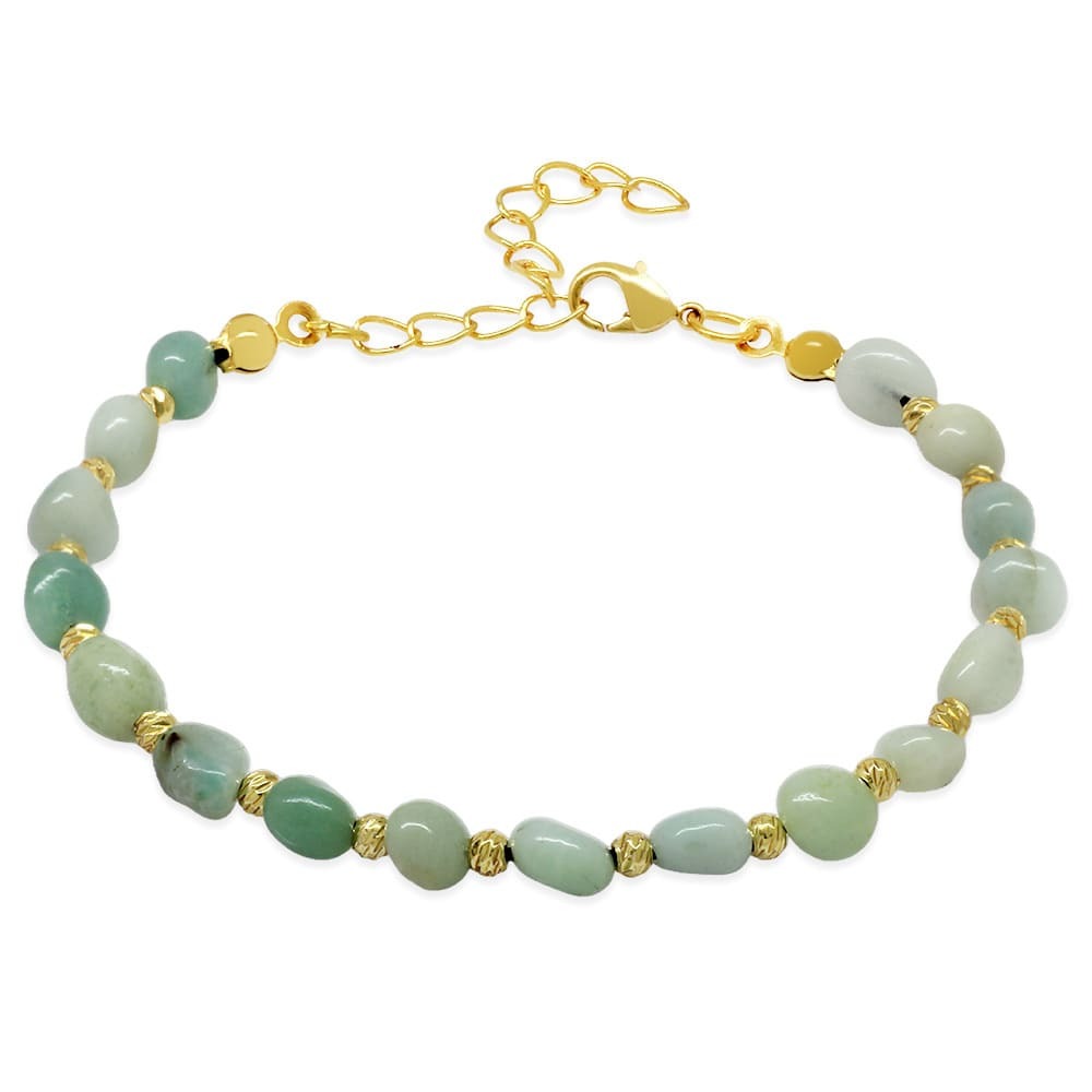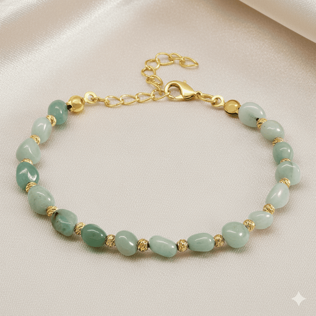 Altın Rengi Metal Zincirli Dorika Top Süslemeli Amorf Amazonit Doğaltaş Kadın Bileklik