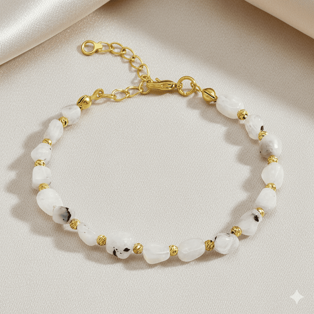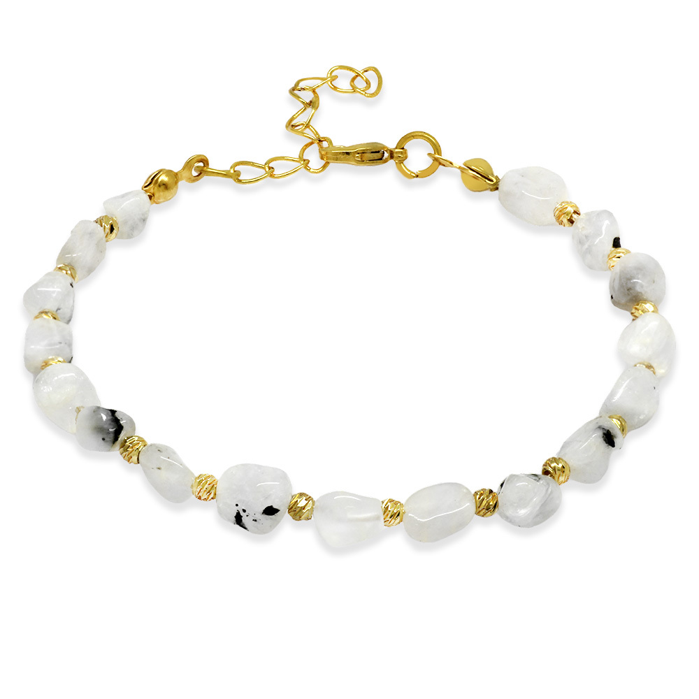 Altın Rengi Metal Zincirli Dorika Top Süslemeli Amorf Ay Taşı Doğaltaş Kadın Bileklik