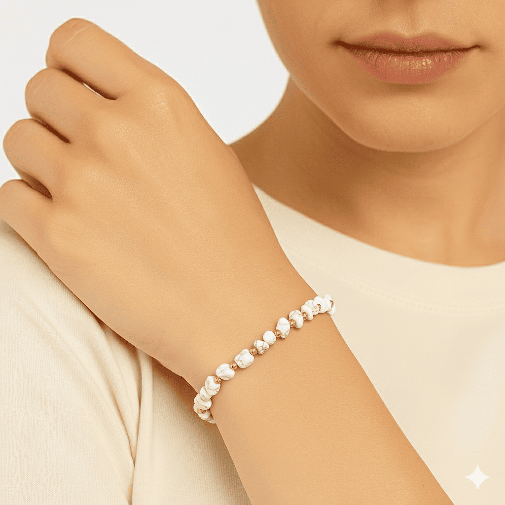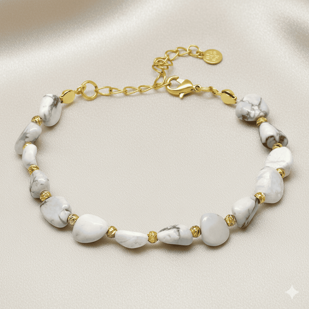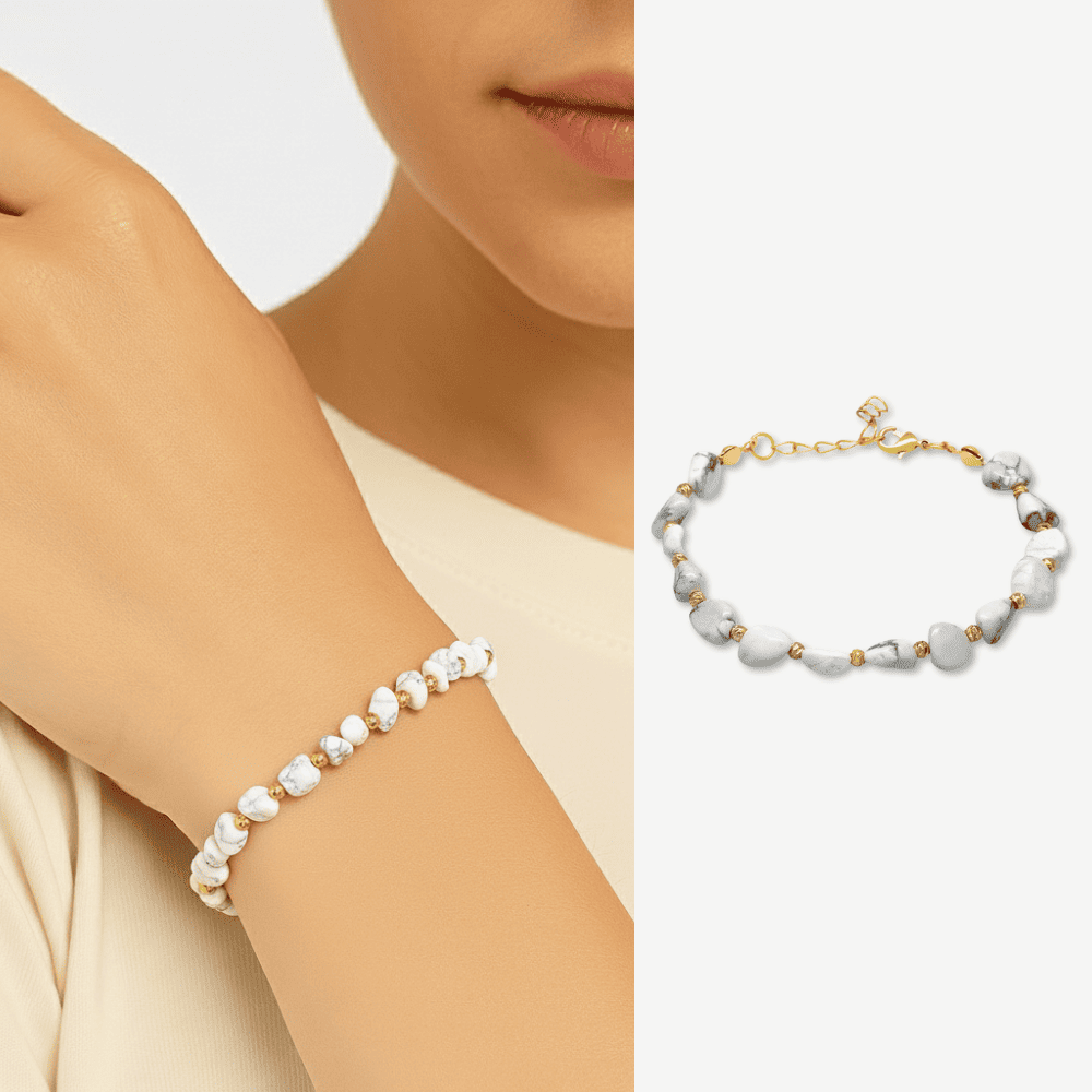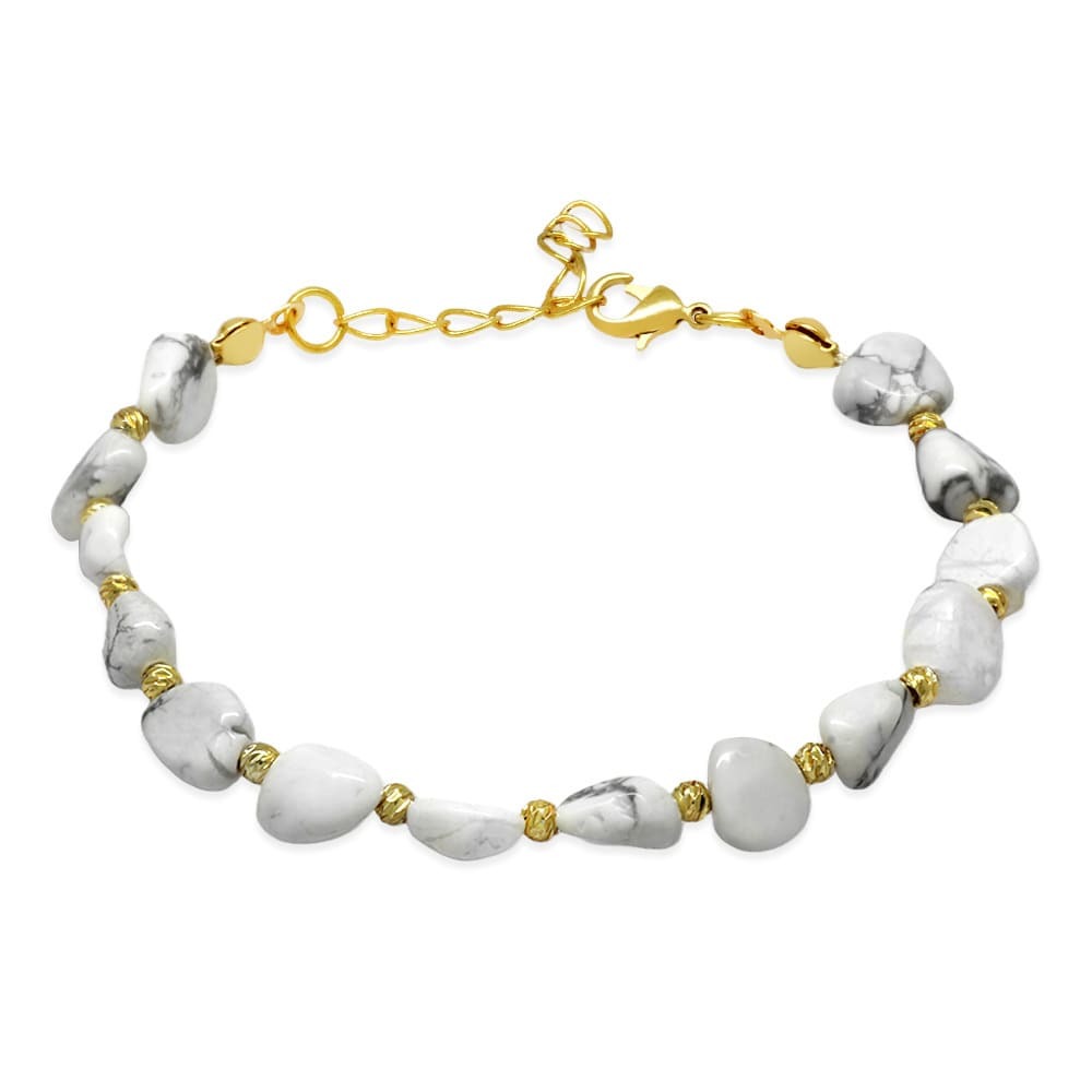 Altın Rengi Metal Zincirli Dorika Top Süslemeli Amorf Havlit Doğaltaş Kadın Bileklik