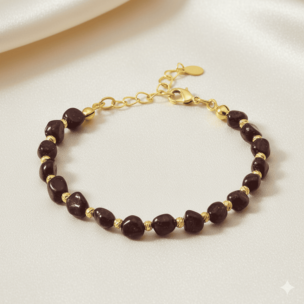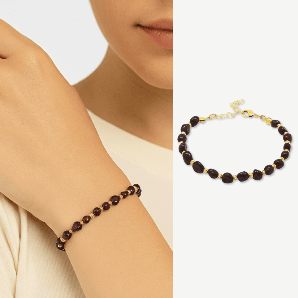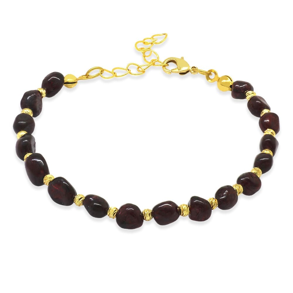 Altın Rengi Metal Zincirli Dorika Top Süslemeli Amorf Lal Taşı Doğaltaş Kadın Bileklik