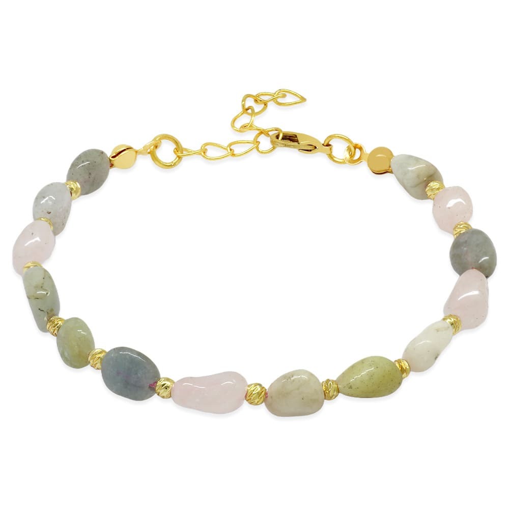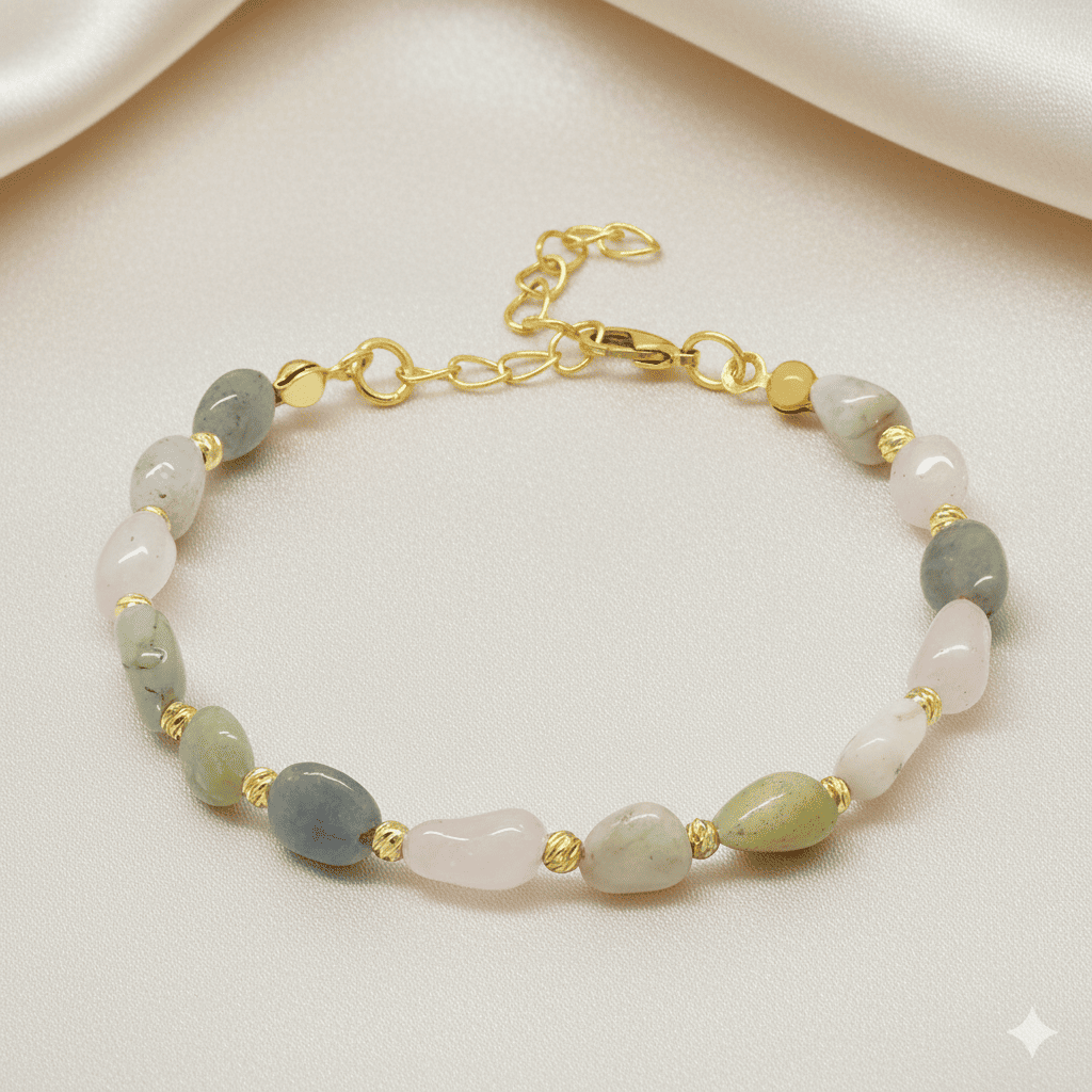 Altın Rengi Metal Zincirli Dorika Top Süslemeli Amorf Morganit Doğaltaş Kadın Bileklik