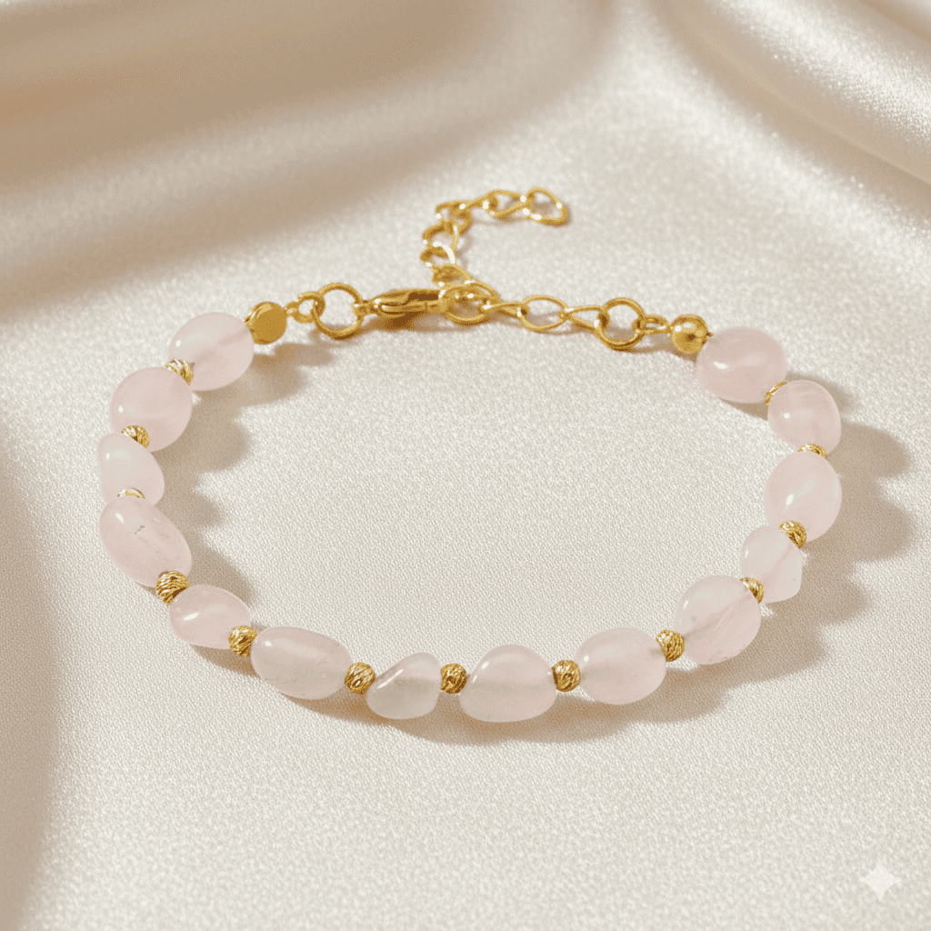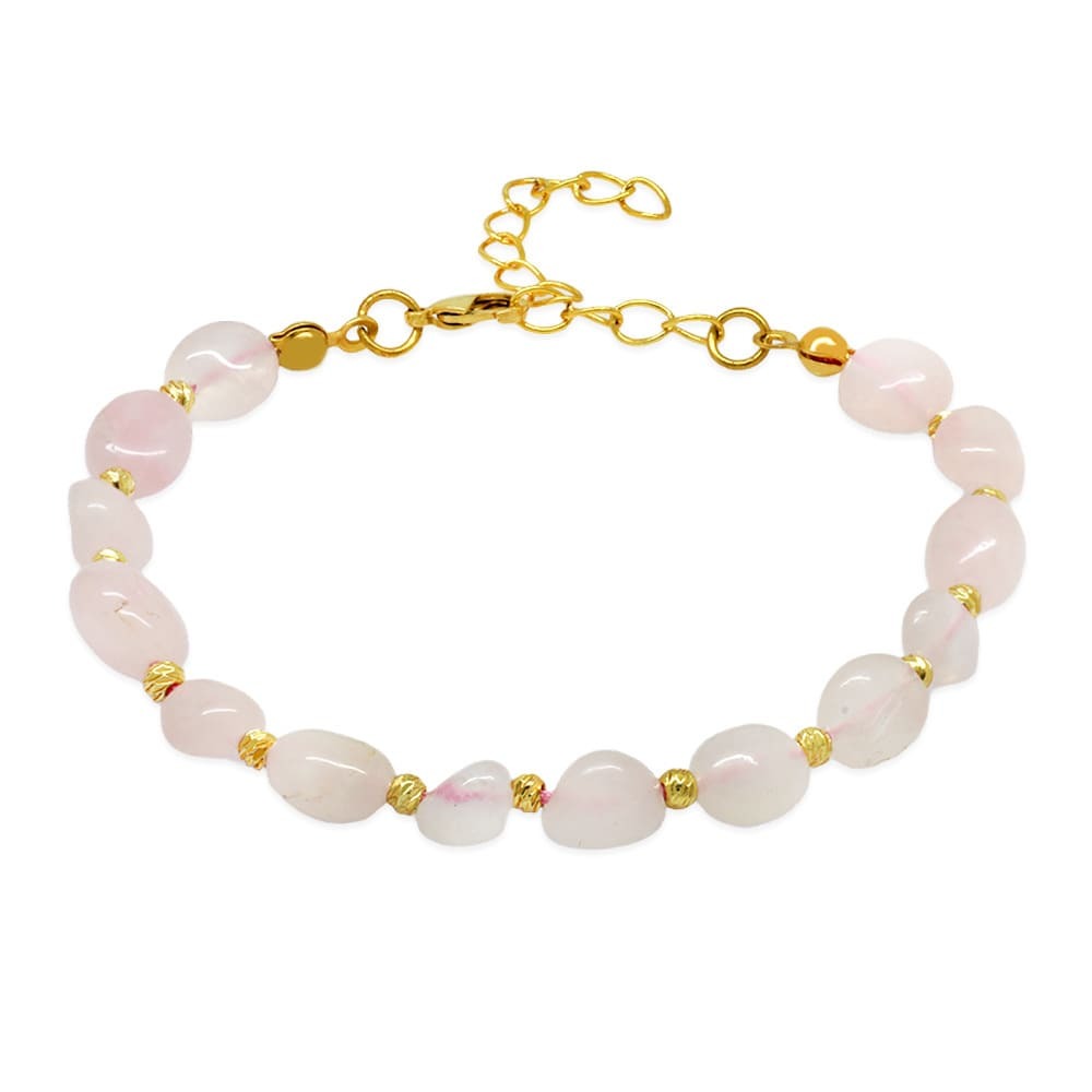 Altın Rengi Metal Zincirli Dorika Top Süslemeli Amorf Pembe Kuvars Doğaltaş Kadın Bileklik