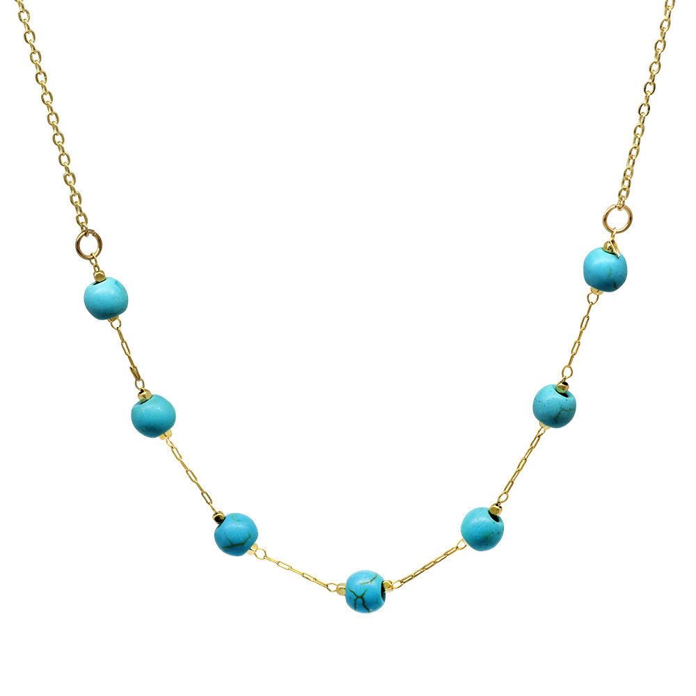 Altın Renk Metal Zincirli Firuze Turkuaz Doğaltaş Kadın Kolye