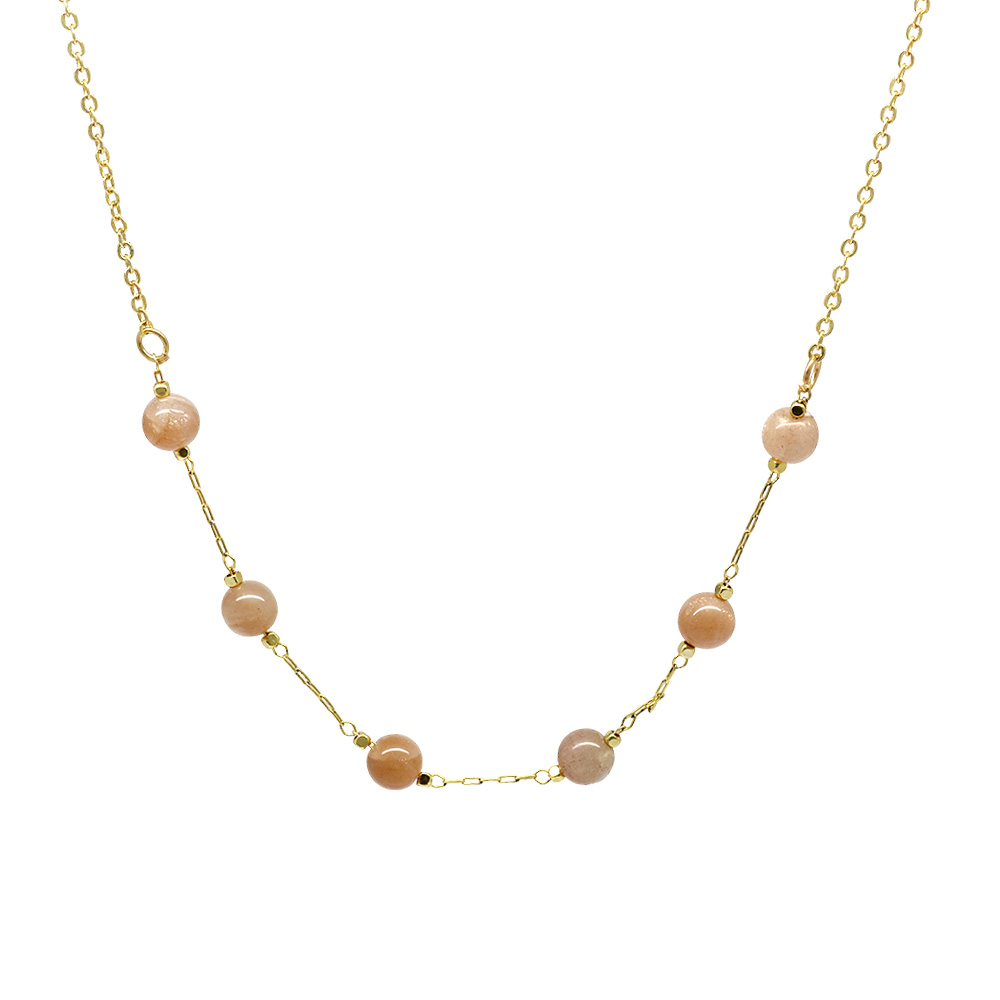 Altın Renk Metal Zincirli Güneş Taşı Doğaltaş Kadın Kolye