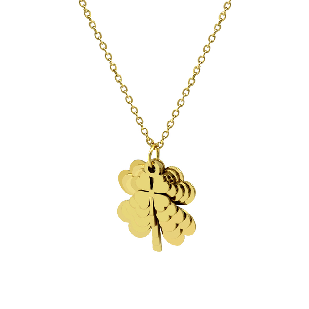 Altın Renk Yonca Yaprağı Tasarım Çekirdek Aile Temalı İsme Özel Çelik Kadın Kolye - En Fazla 5 İsim