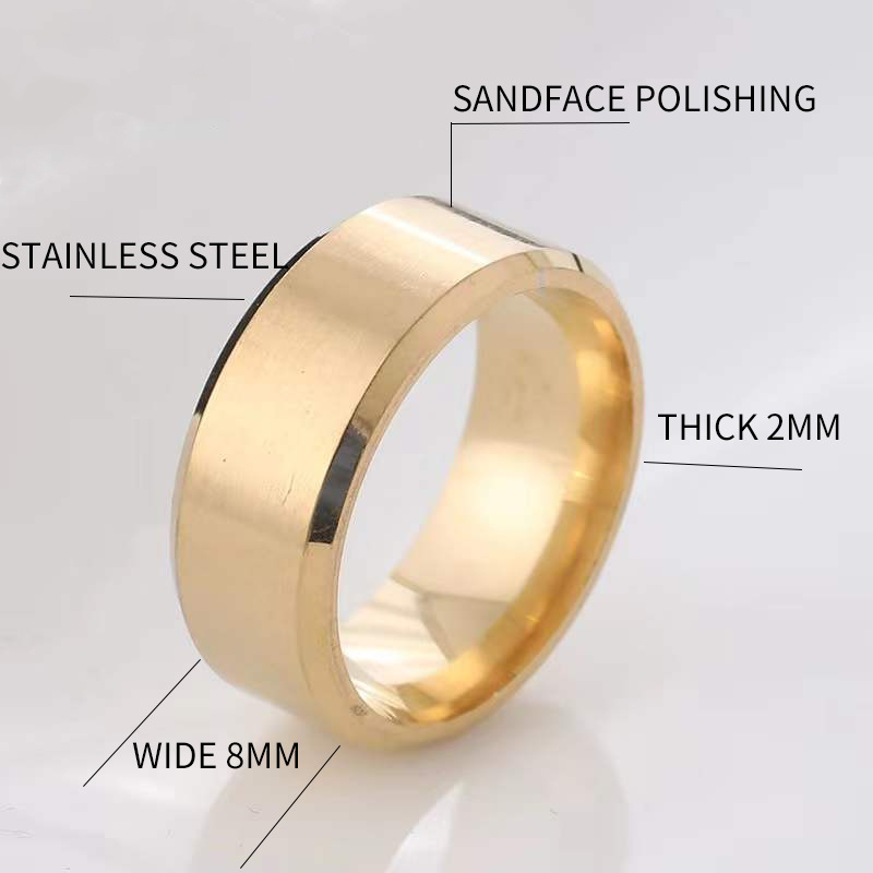 Altın Renkli 316L Kalite Paslanmaz Erkek Çelik Alyans Yüzük - 21 Ölçü