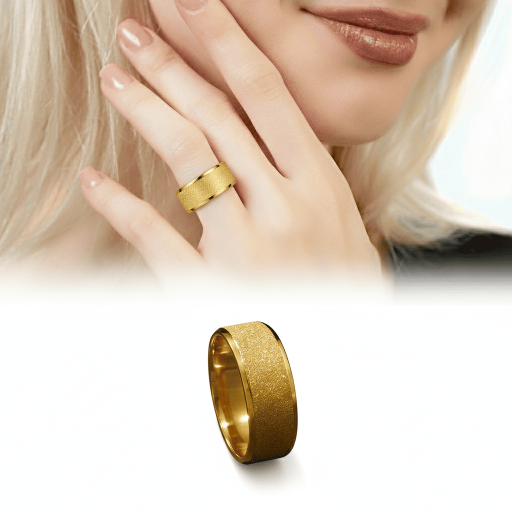 Altın Renk Zarif Tasarım 316L Kalite Paslanmaz Çelik Kadın Yüzük Alyans - 19 Ölçü