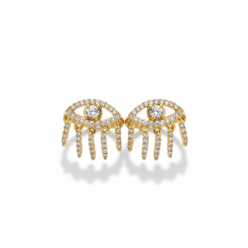 Göz Tasarım Altın Renk 925 Ayar Gümüş Kadın Küpe
