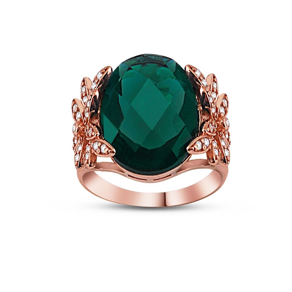 Gümüş Çiçekli Zümrüt Renk Yüzük