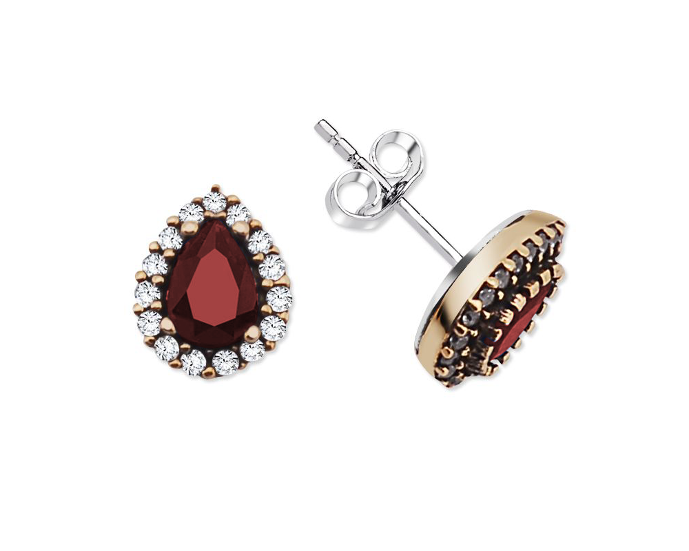 Kırmızı Zirkon Taşlı Damla Tasarım 925 Ayar Gümüş Küpe