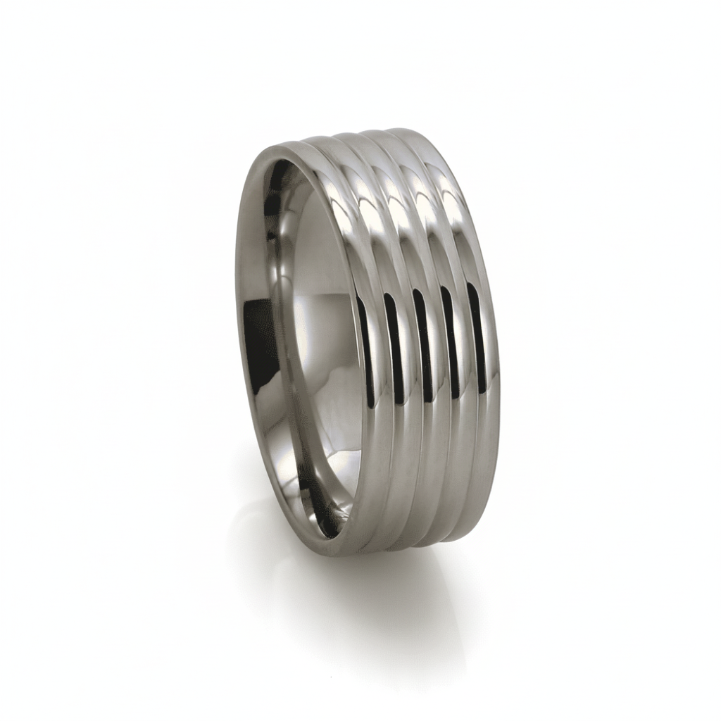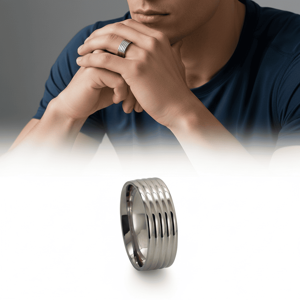 Gümüş Renk Beş Sıra Tasarım 316L Kalite Paslanmaz Çelik Erkek Yüzük Alyans - 17 Ölçü