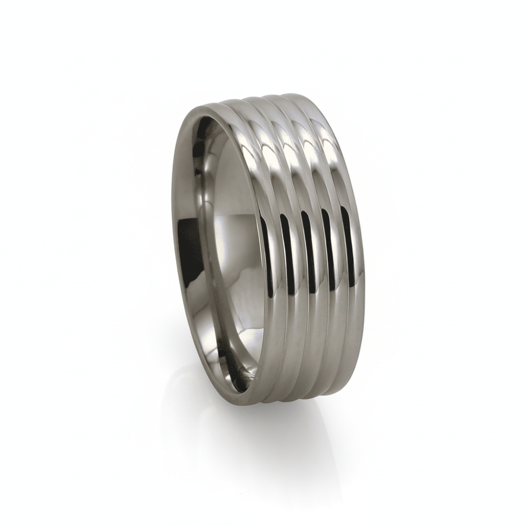 Gümüş Renk Beş Sıra Tasarım 316L Kalite Paslanmaz Çelik Erkek Yüzük Alyans - 23 Ölçü