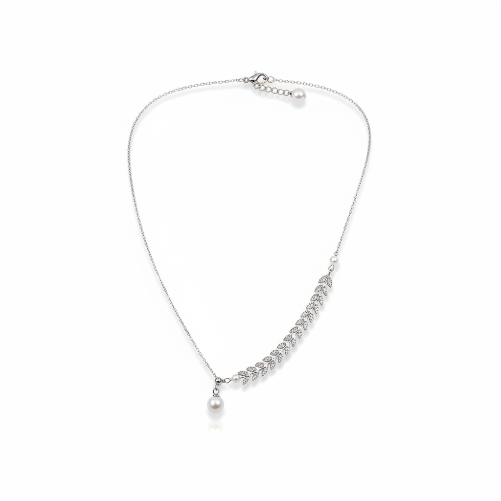 Gümüş Renk Kararmaz Metal Zincirli Balina Kuyruğu Detaylı İnci Doğaltaş Kombinli Kadın Kolye