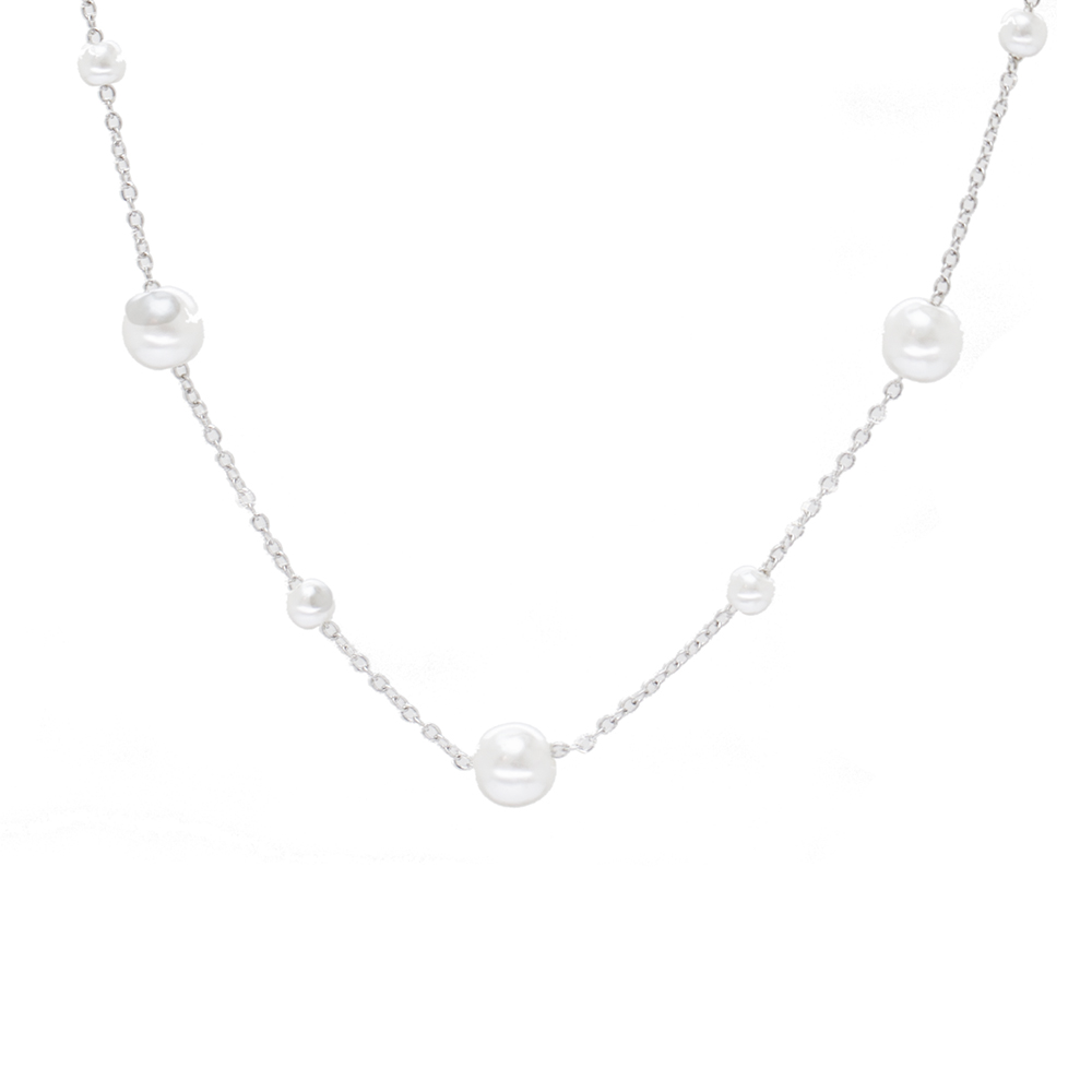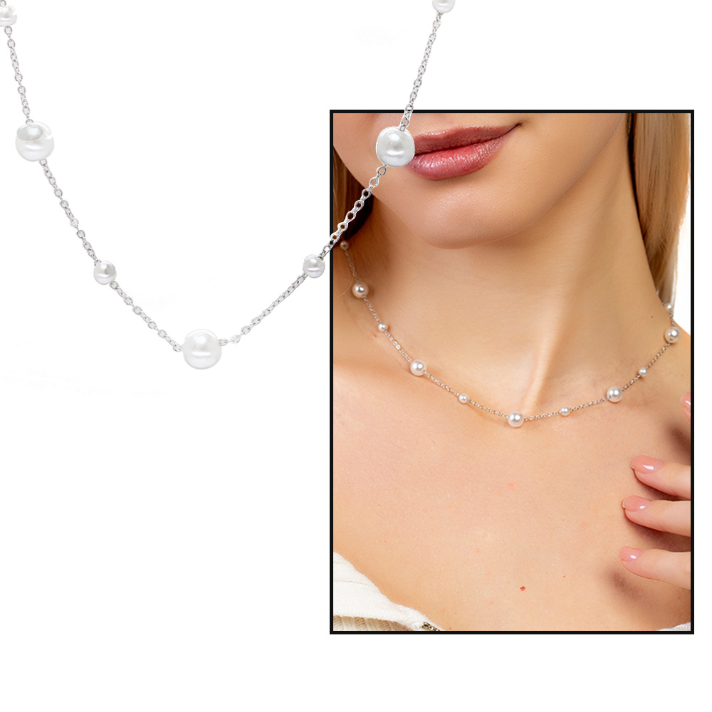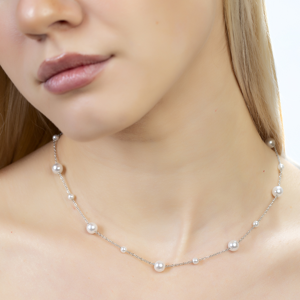 Gümüş Renk Kararmaz Metal Zincirli İnci Doğaltaş Kombinli Kadın Kolye - 1