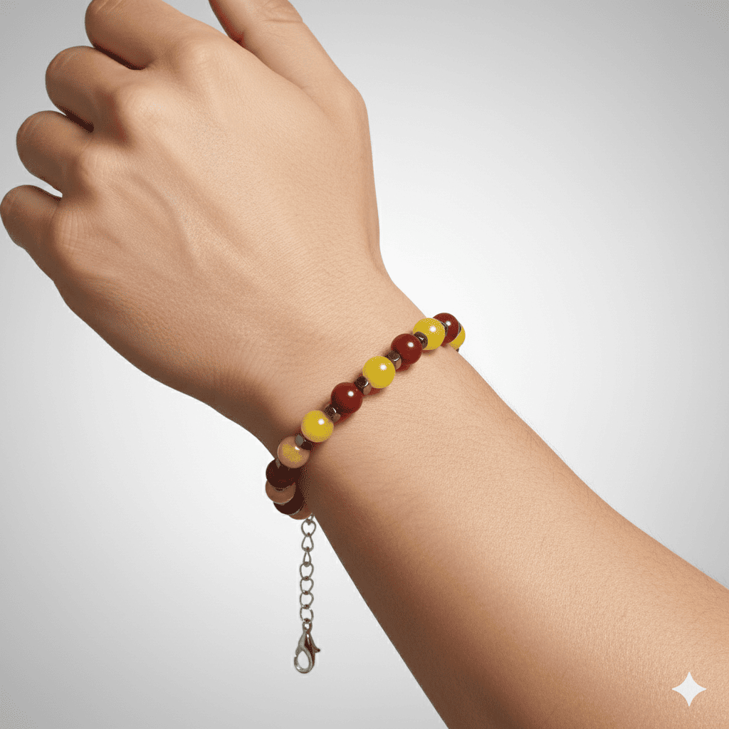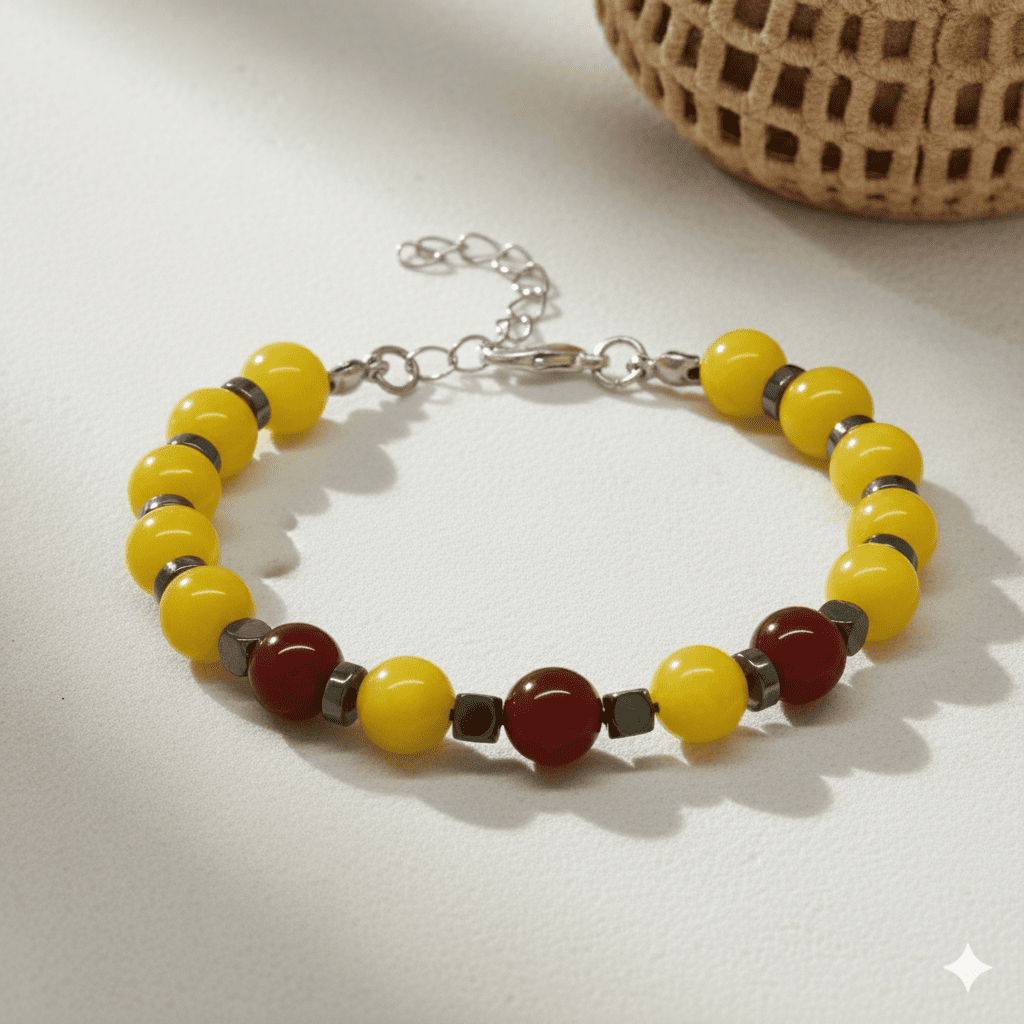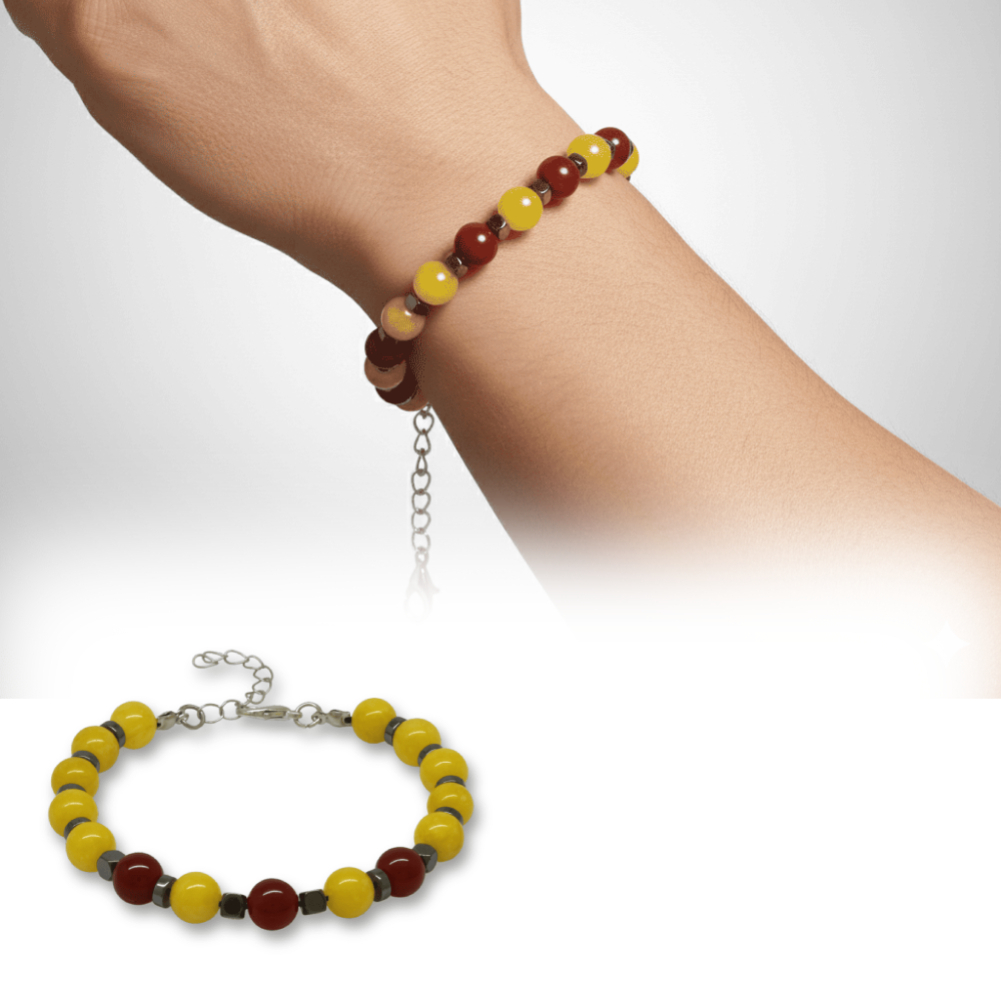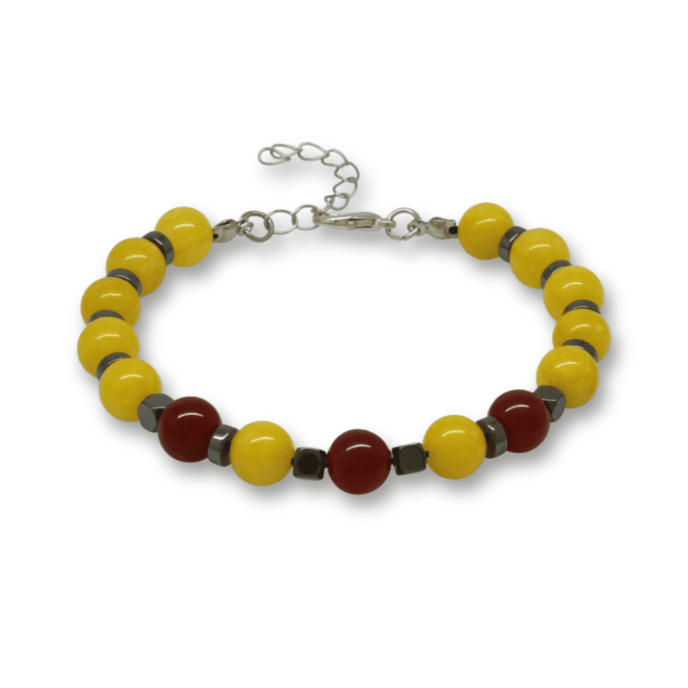 Gümüş Renk Metal Zincirli Küre Kesim Sarı Kırmızı Jade Akik Hematit Doğaltaş Erkek Taraftar Bileklik
