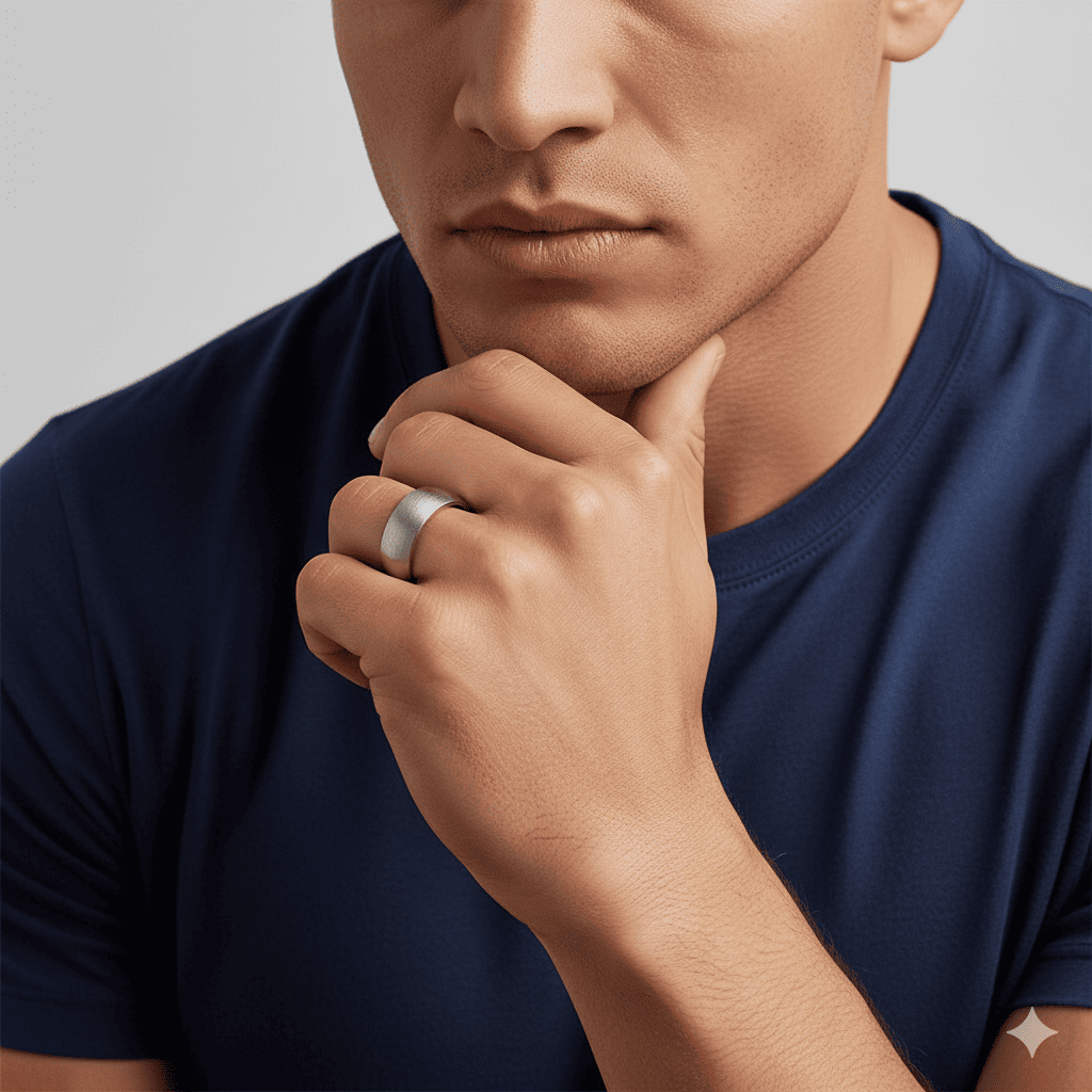 Gümüş Renk Klasik Tasarım 316L Kalite Paslanmaz Çelik Erkek Yüzük Alyans - 24 Ölçü