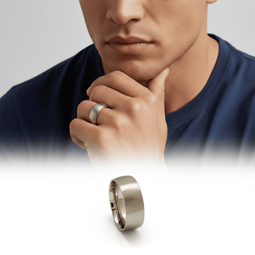 Gümüş Renk Klasik Tasarım 316L Kalite Paslanmaz Çelik Erkek Yüzük Alyans - 27 Ölçü
