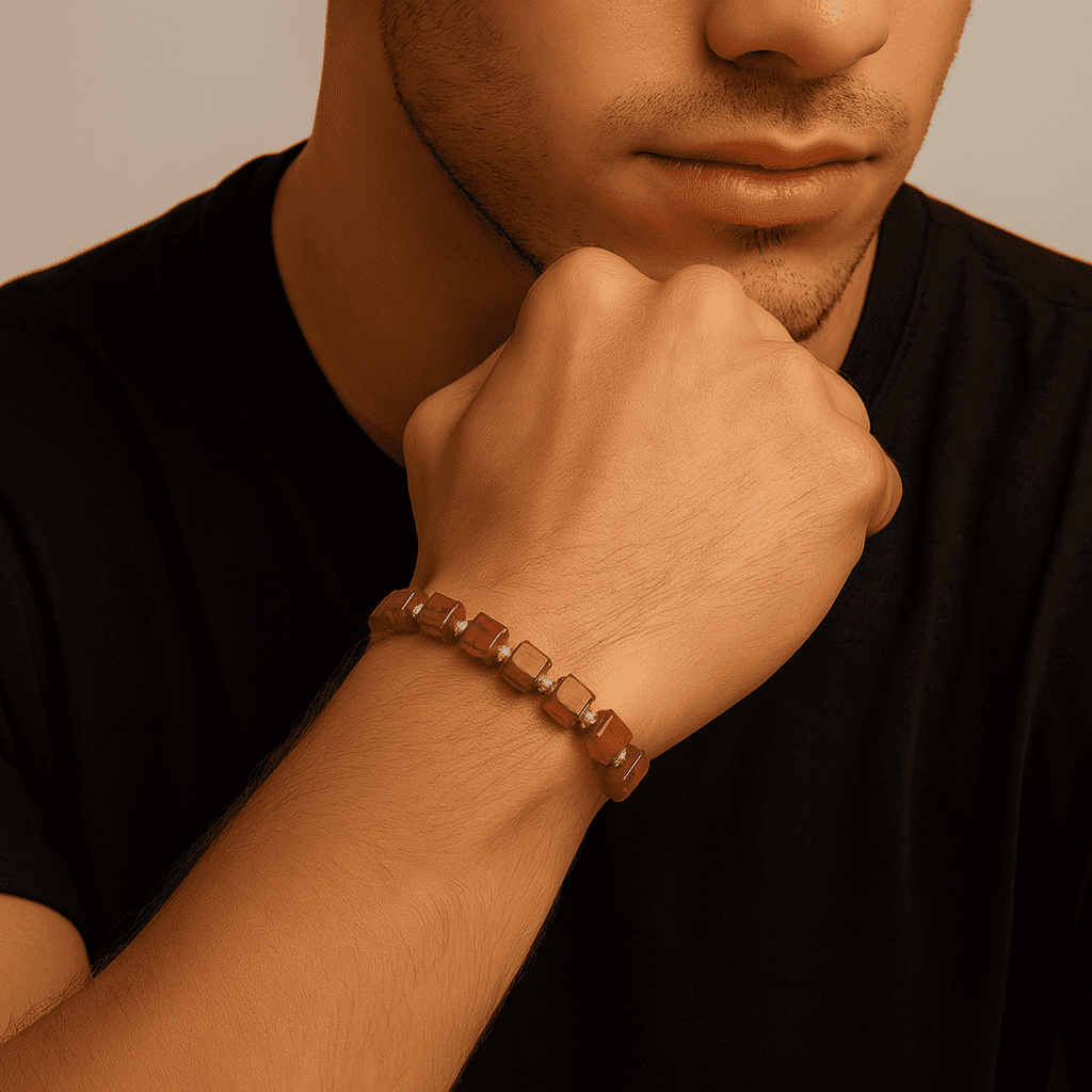 Gümüş Renk Metal Zincirli Dorika Top Süsleme Küp Kesim Bal Rengi Doğal Damla Kehribar Erkek Bileklik
