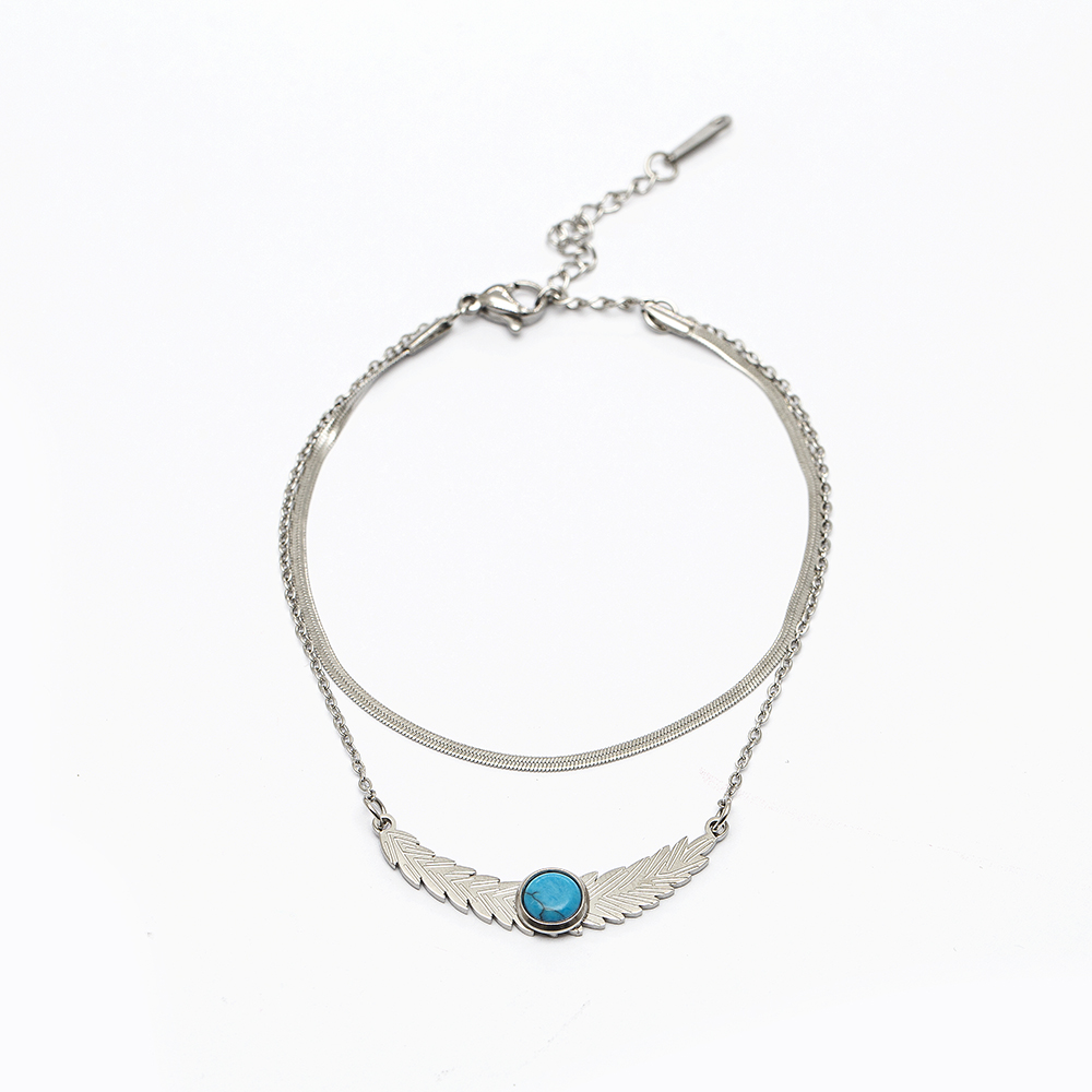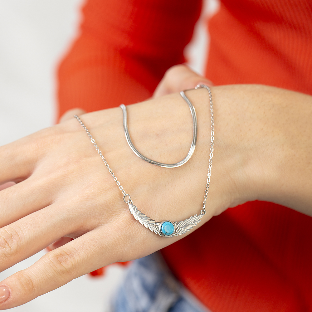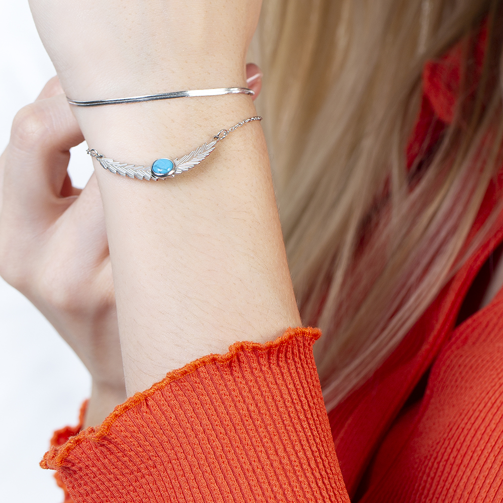 Gümüş Renk Snake Zincirli Firuze Doğaltaş Kombinli Buğday Tasarım Kadın Bileklik