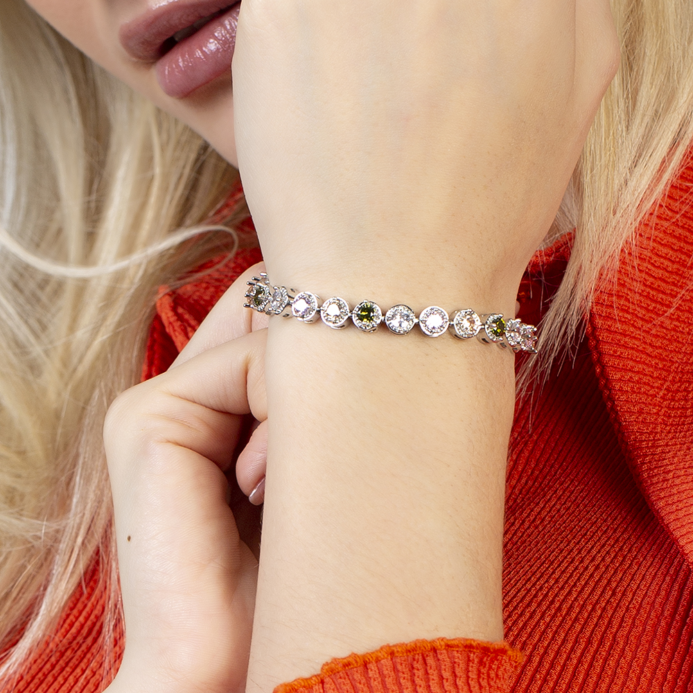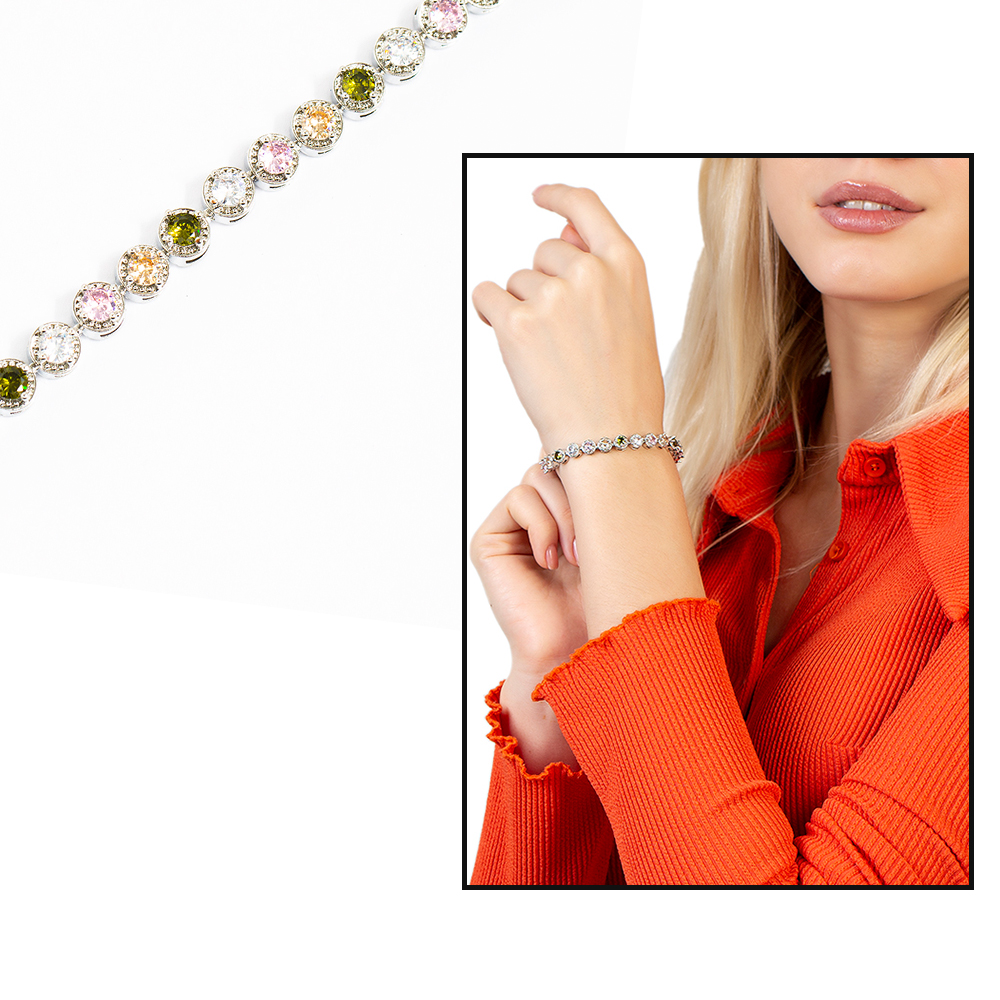 Gümüş Renk Zirkon Taşlı Tam Tur Çelik Kadın Bileklik