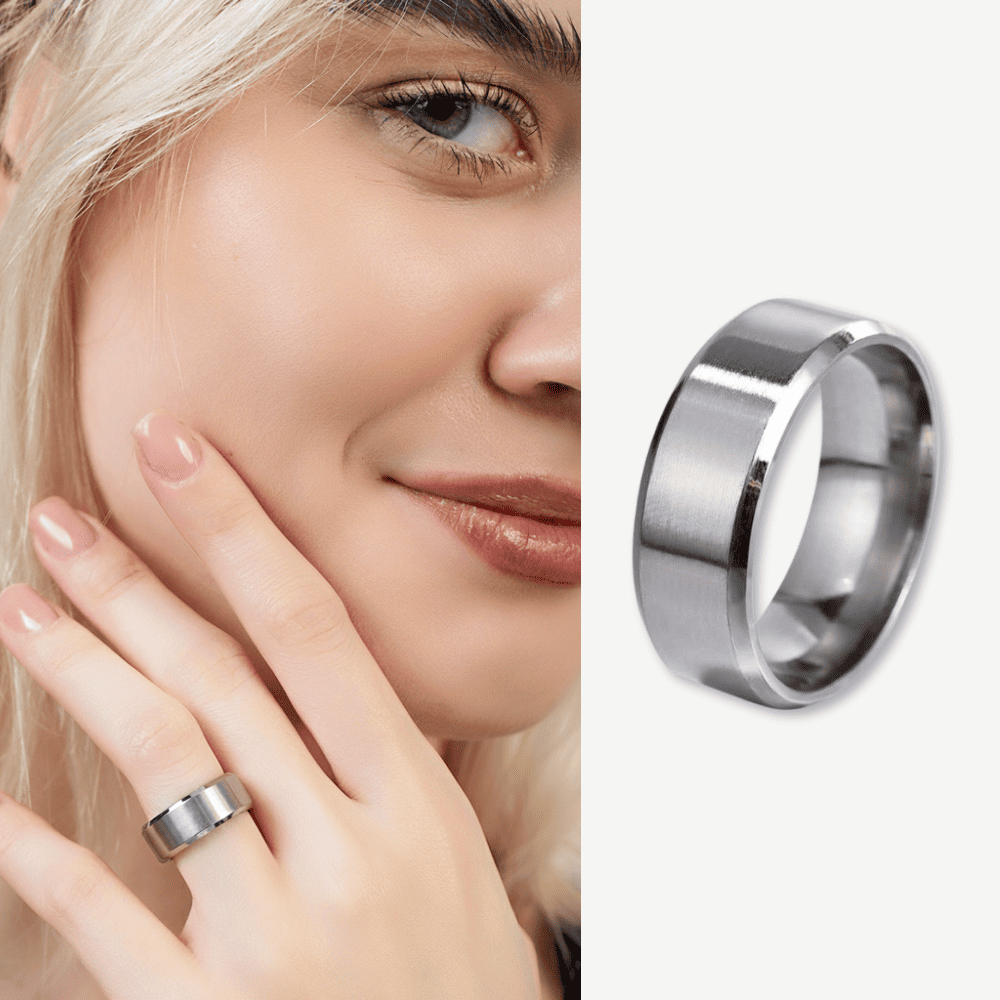 Gümüş Renkli 316L Kalite Paslanmaz Kadın Çelik Alyans Yüzük - 12 Ölçü