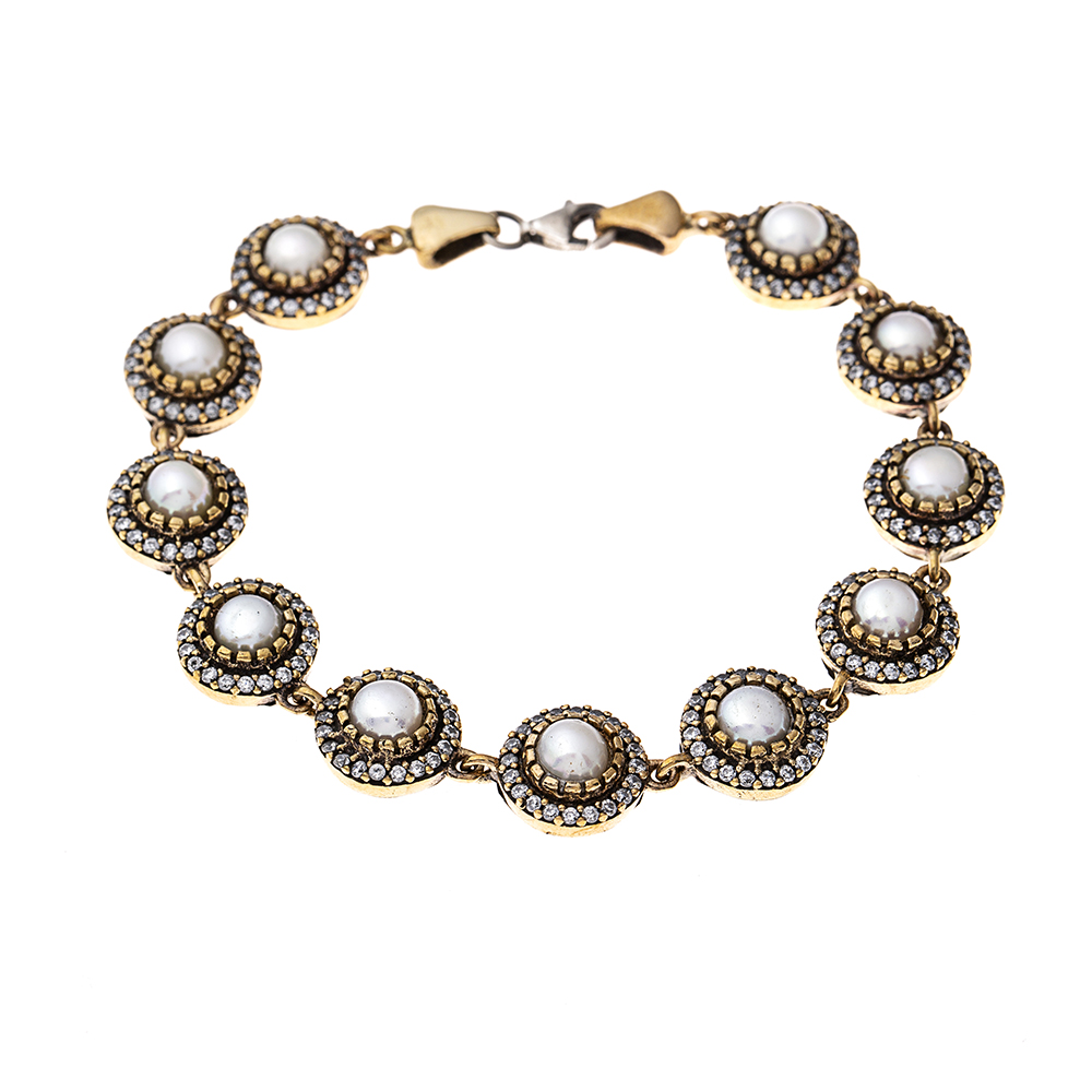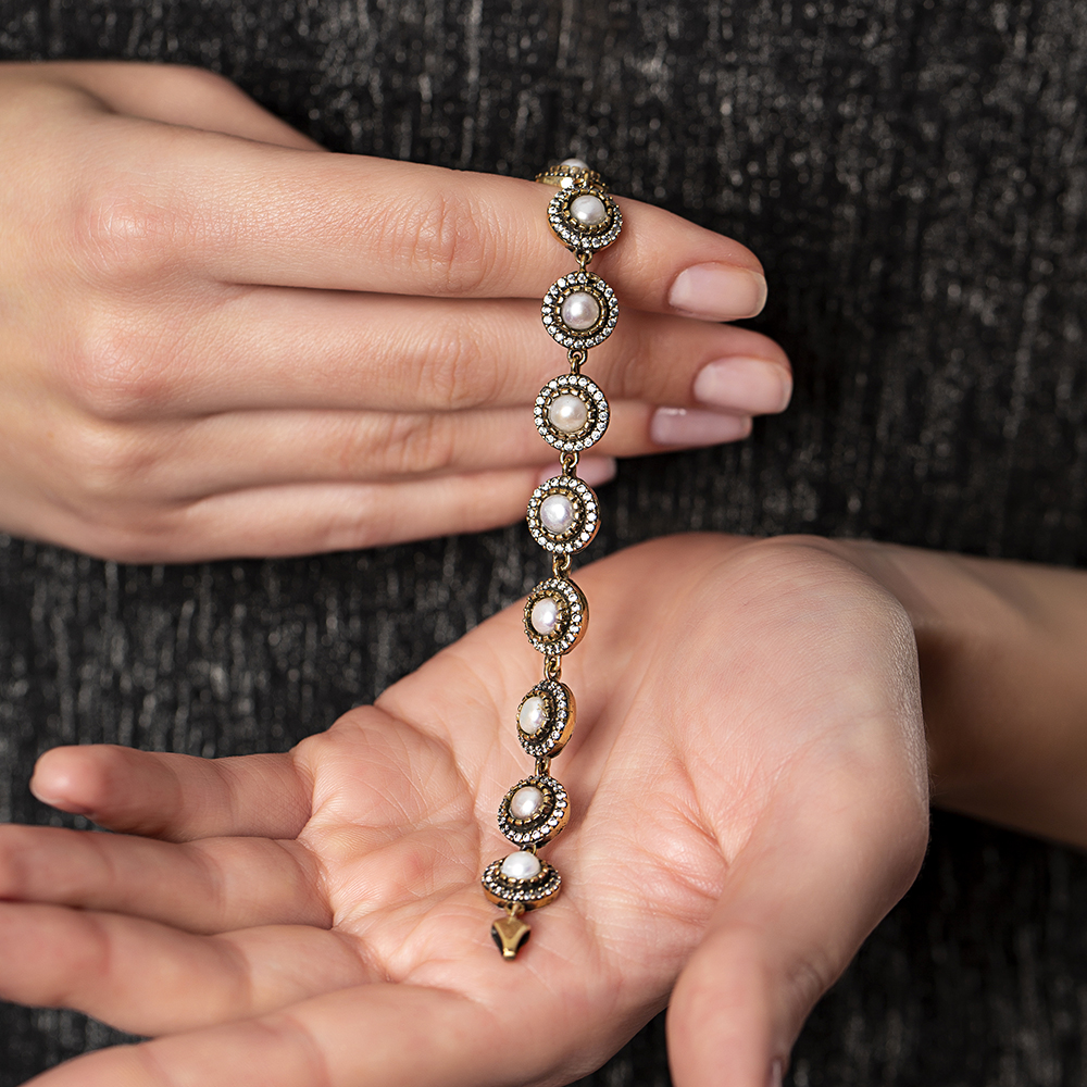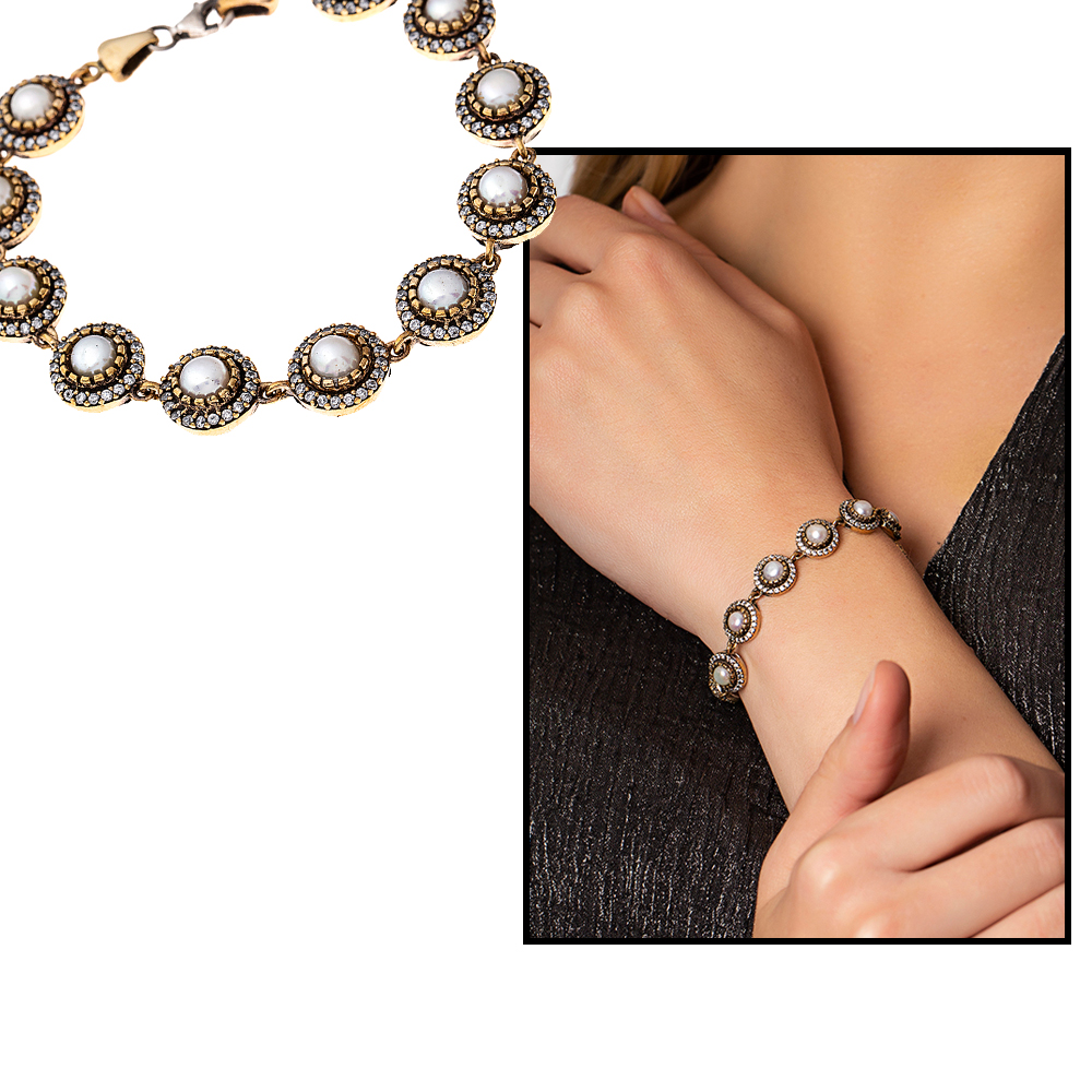 Zirkon Taşlı Yarım Küre Tasarım 925 Ayar Gümüş Bayan Bileklik