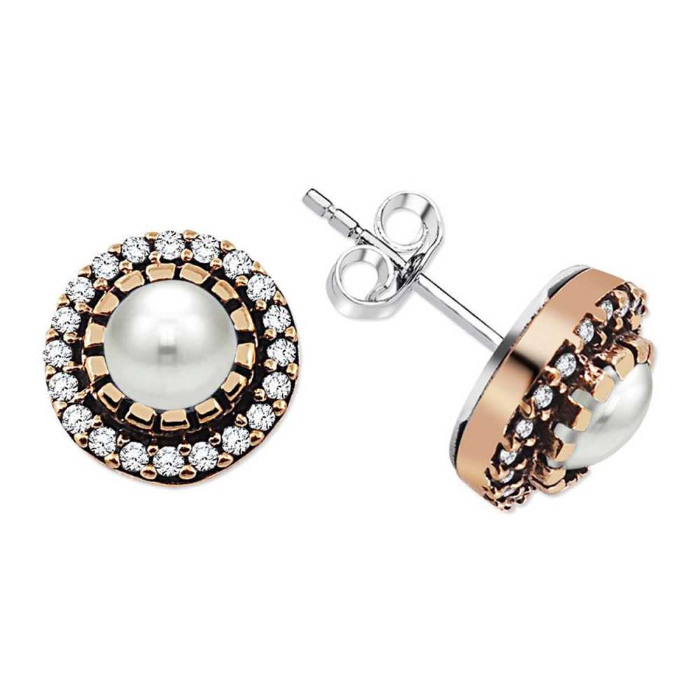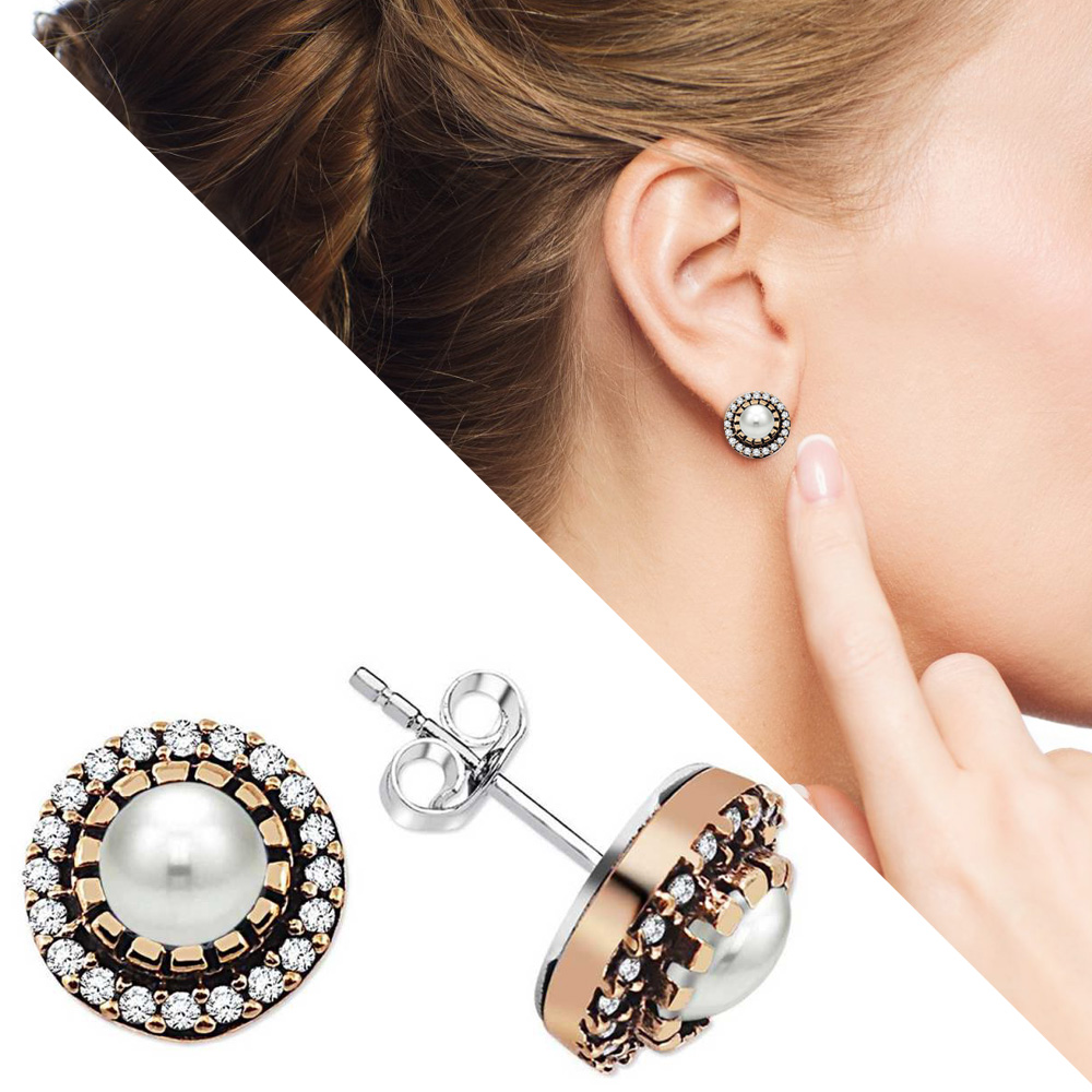 Beyaz Zirkon Taşlı Yuvarlak Tasarım 925 Ayar Gümüş Küpe