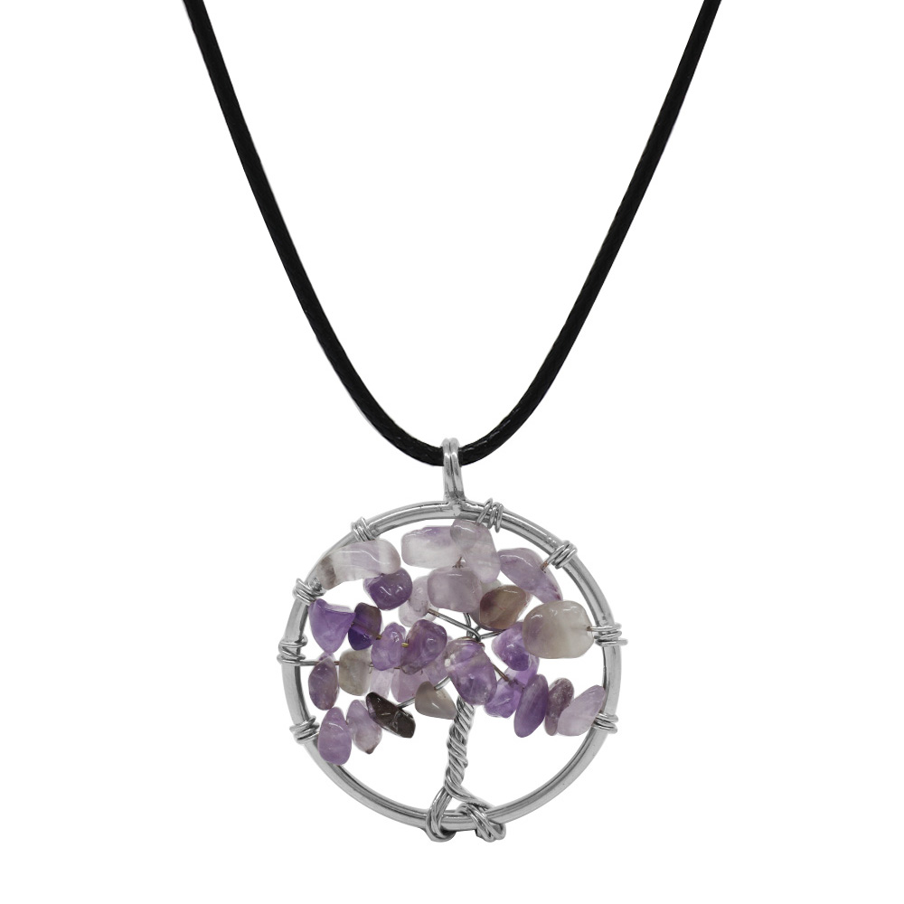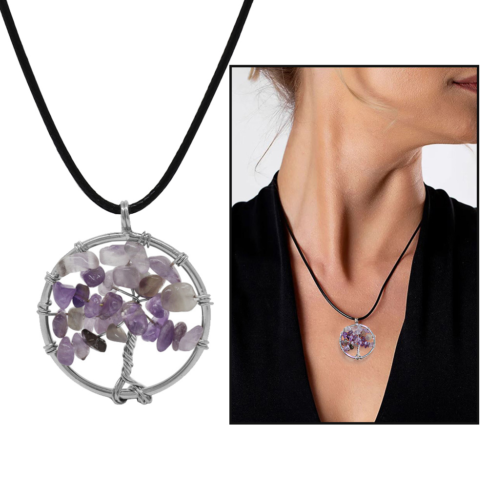 Hayat Ağacı Tasarım Zarif İp Zincirli Ametist Doğaltaş Kadın Kolye