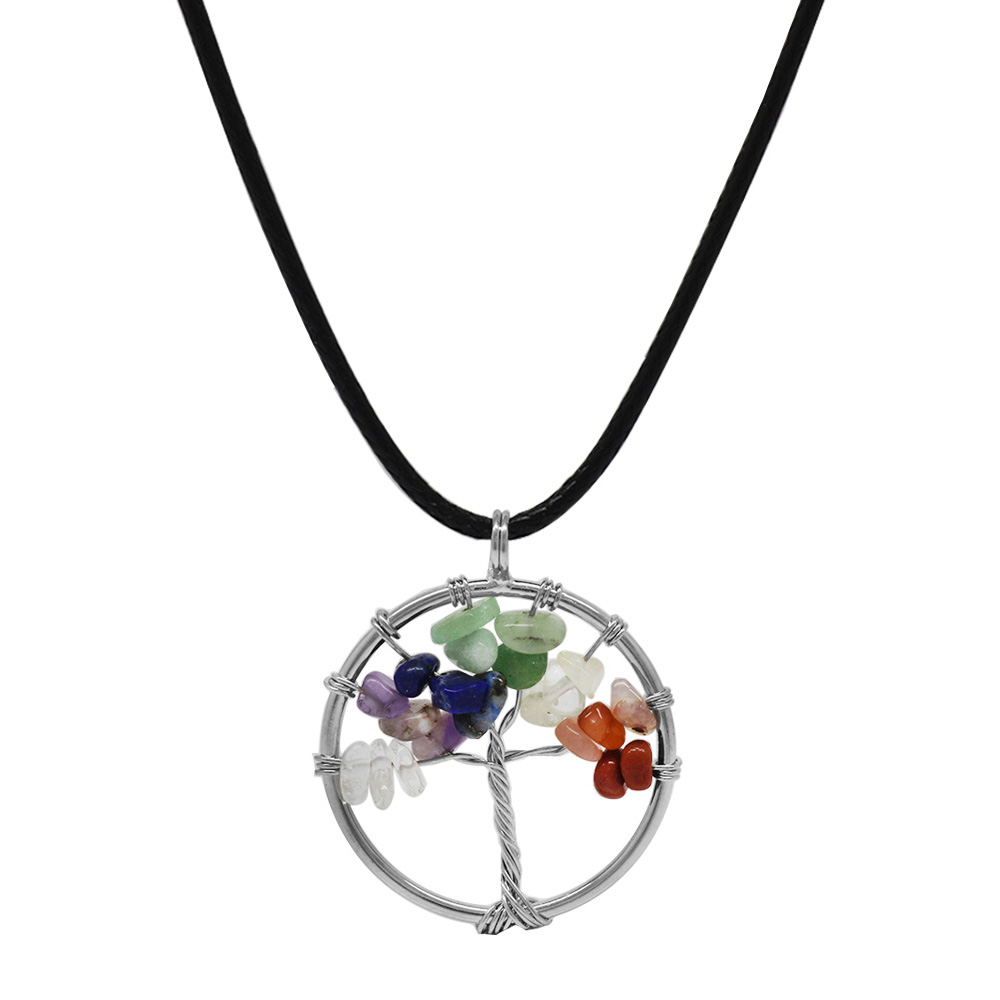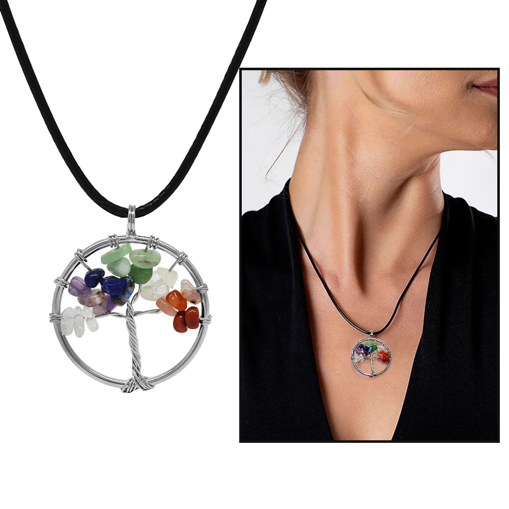Hayat Ağacı Tasarım Zarif İp Zincirli Çoklu Doğaltaş Kadın Kolye - 1