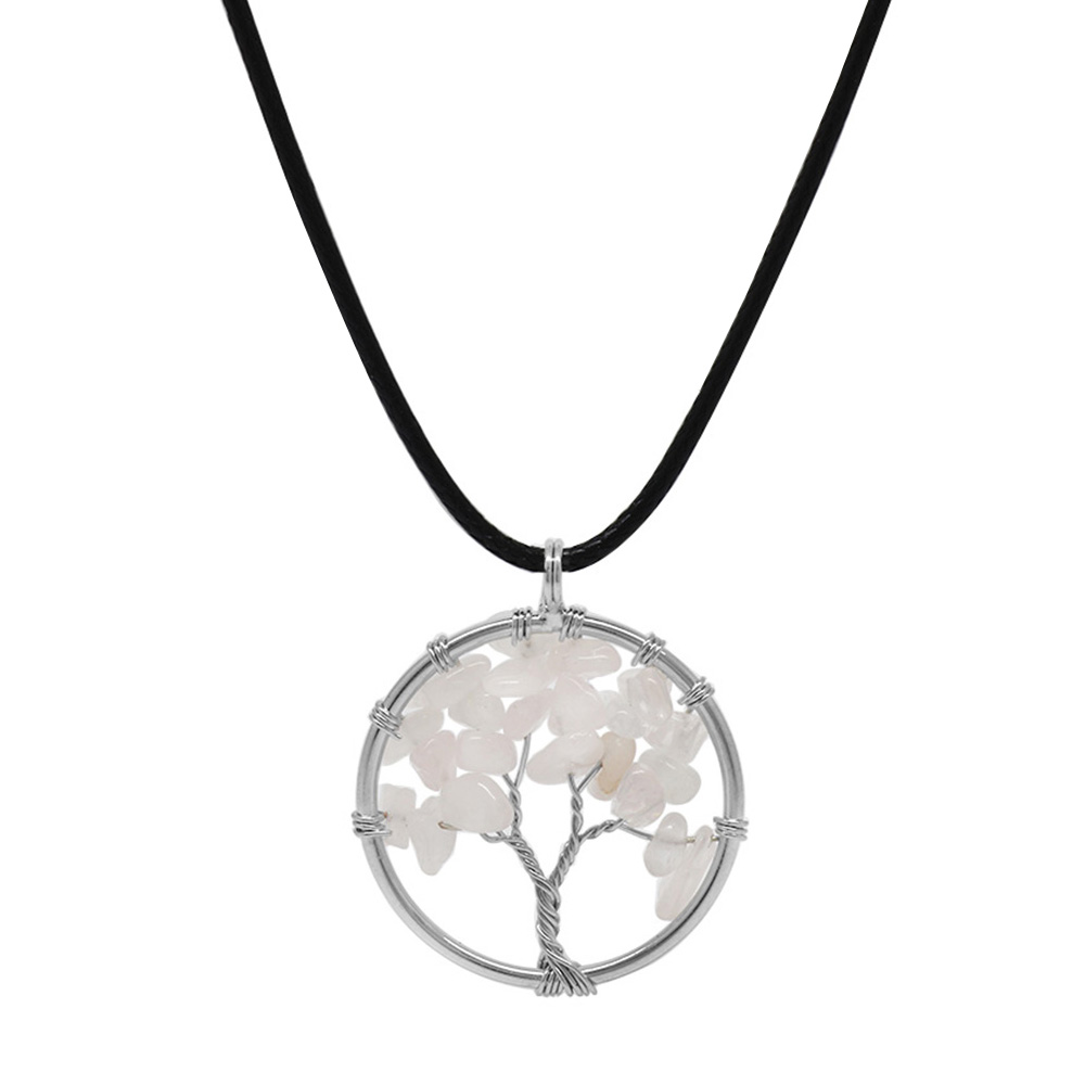 Hayat Ağacı Tasarım Zarif İp Zincirli Kuvars Doğaltaş Kadın Kolye - 1